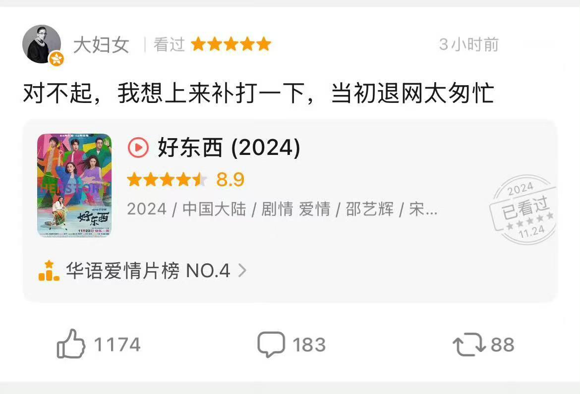 邵艺辉给好东西补打五星邵艺辉回归豆瓣邵艺辉回归豆瓣!给《好东西》补打了五星,还给