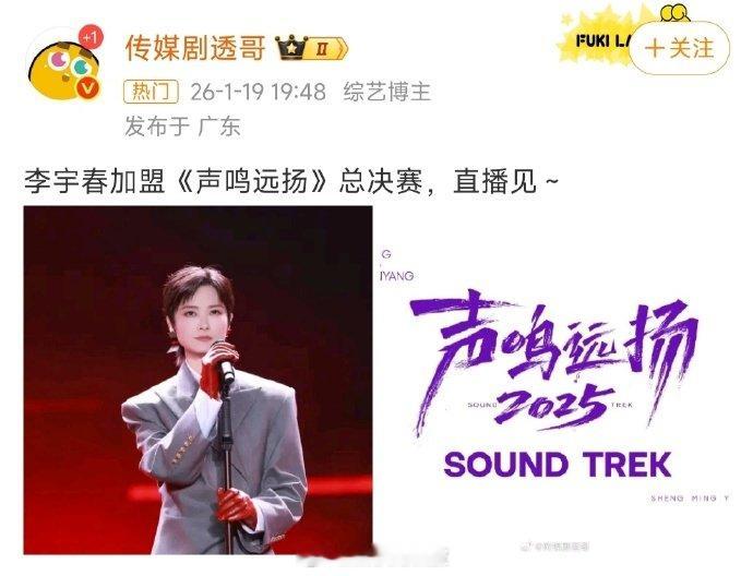 选秀鼻祖李宇春来给内娱上课了李宇春加盟《声鸣远扬》总决赛,原创大神与新生代的碰撞太期待!声鸣远扬李宇春