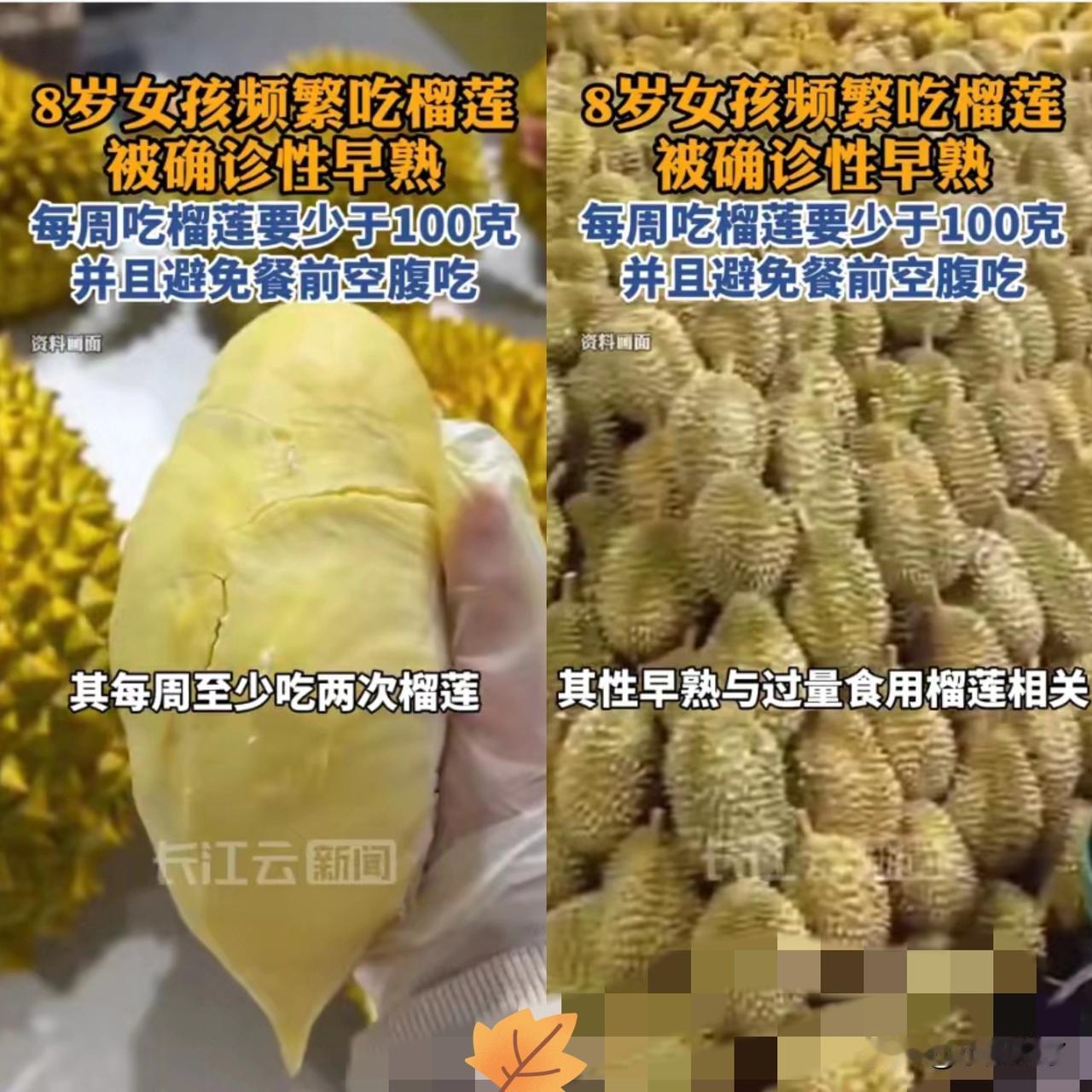近日,福建福州,一8岁女孩的妈妈给孩子洗澡时,突然发现她的乳房出现了异常发育的迹像,就医后确诊性早熟,而揪出的“元凶”,居然是孩子天天吃的榴莲! 家长见孩子爱吃就纵容,每天喂一整个,可榴莲热量堪比3只鸡,过量摄入会让脂肪细胞分泌雌激素,直接打乱孩子内分泌。 现在每100个娃里就有1-2个性早熟,荔枝、含糖饮料、油炸食品都是隐形风险! 爱孩子从不是无底线投喂,科学节制才是关键!医生强调榴莲每周别超100克,饮食均衡+多运动才靠谱。 很多时候,错误的“补营养”比“缺营养”更伤娃,家长的分寸感,才是孩子健康成长的第一道防线! 你家娃馋榴莲吗?平时怎么把控孩子的饮食量?
