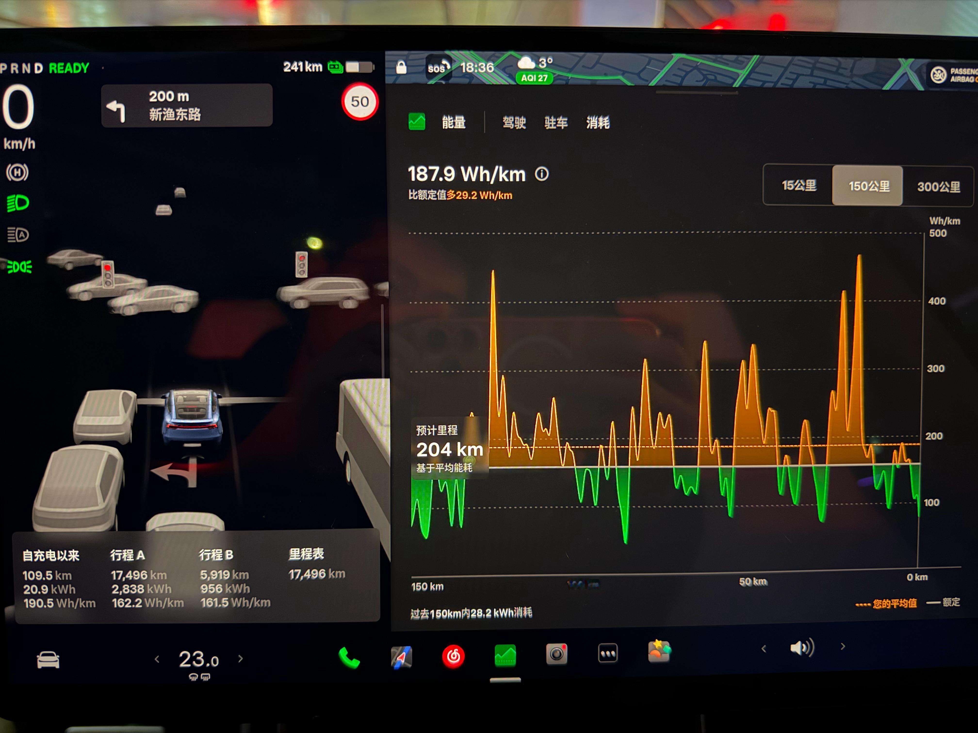 天气寒冷,能耗的确显著增加,充一次电最多只能撑5天就要补能了。特斯拉的空调制热挺好评的,今天上海气温很低差不多0度了,车子空调设置23度体感挺热的,这点很实在,制热工况比一些车设到28 29度还要暖。