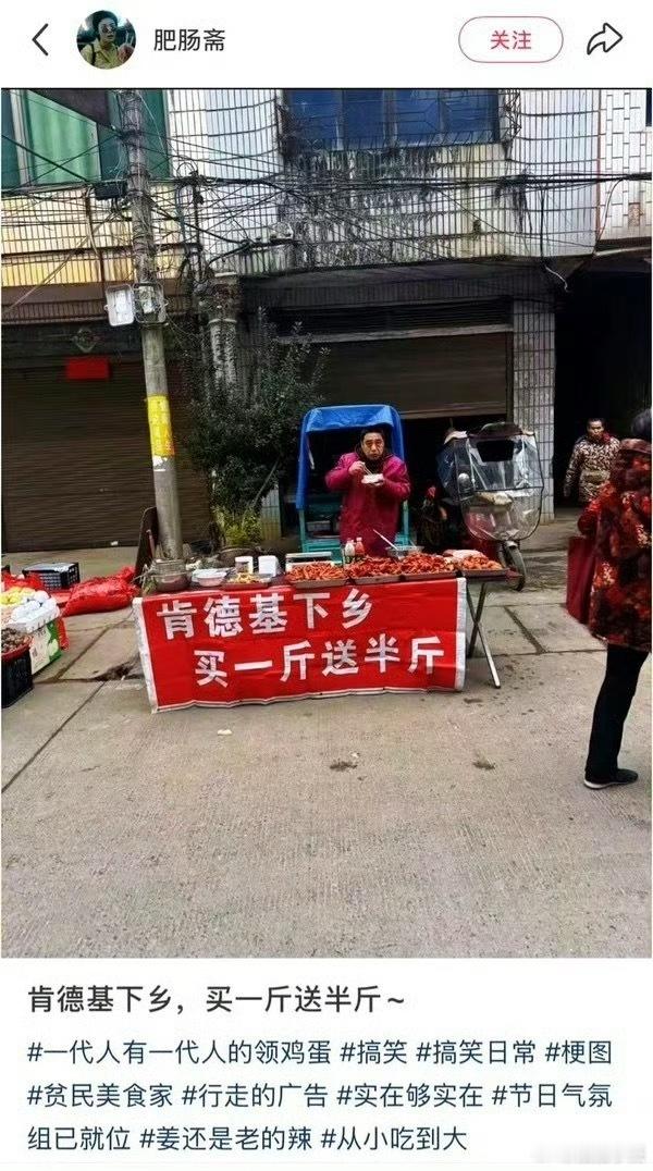 疯狂星期四以后不会再疯狂了,因为大爷把肯德基下乡,买一斤送半斤,即划算又好吃
