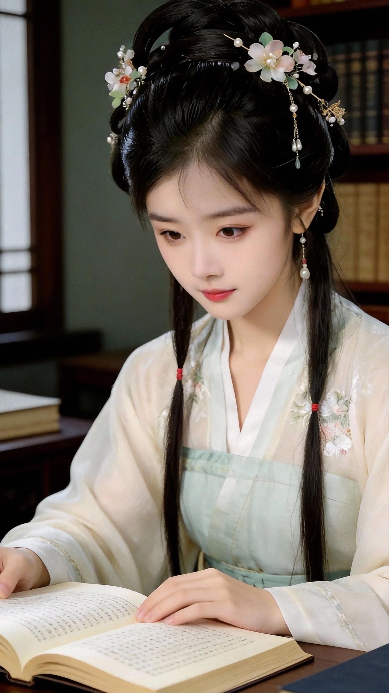 窗棂裁下一方浅白的天光 落在泛黄的纸页上 像谁遗落的旧月光 她的指尖划过竖排的诗行 像春风掠过平仄的檐角 发间的花钿轻颤 惊不醒案头凝固的时光 窗外的竹影在墙上摇晃 屋内的呼吸与墨香共长 一页页翻过的 不只是字句 是青衫里藏住的 半阙盛唐,半世清欢
