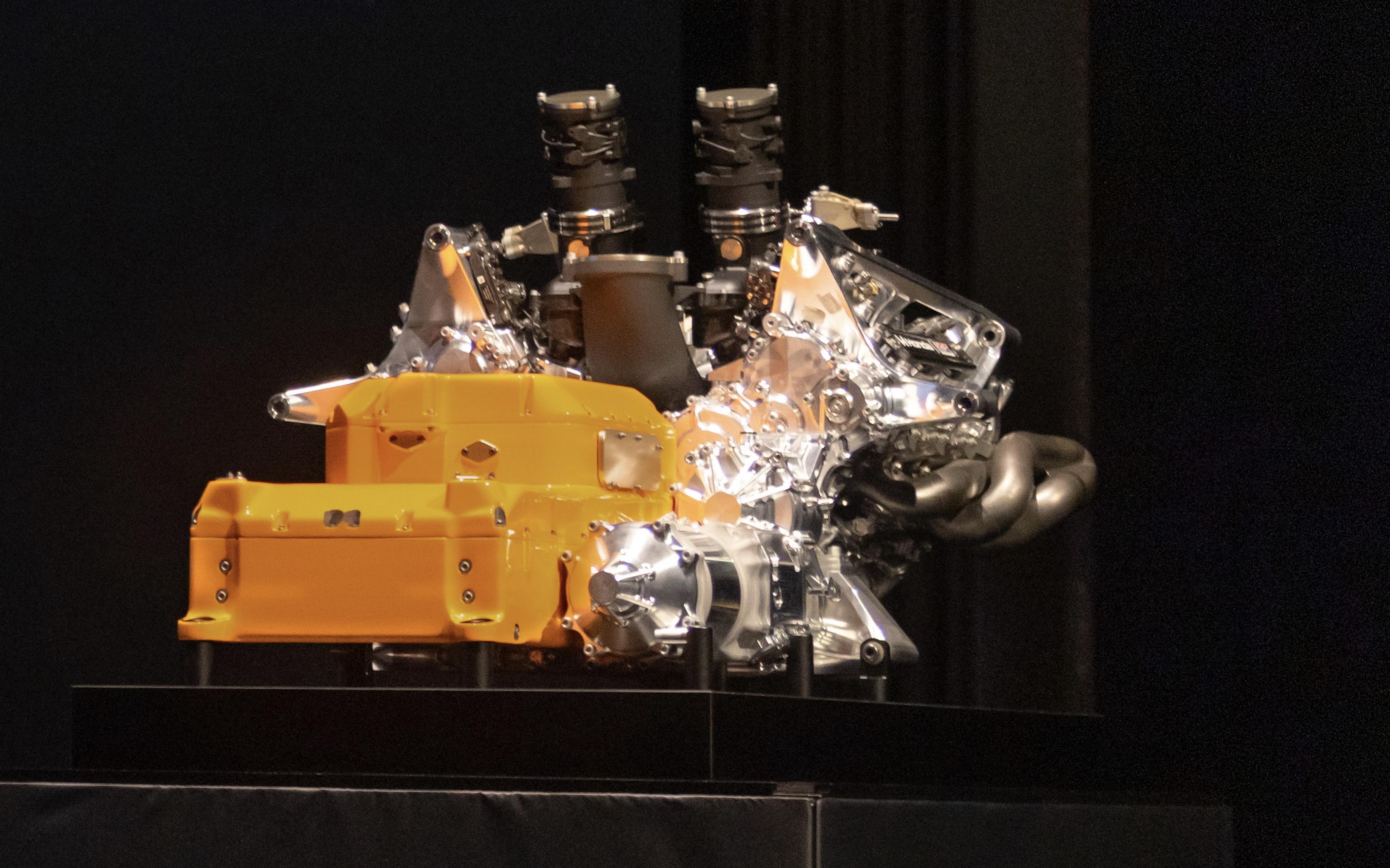 本田在东京发布会上展示的2026款F1引擎RA626H。通过照片可以看到,伴随着