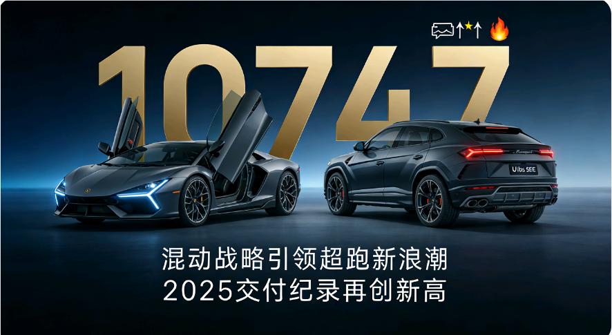 兰博基尼2025交付10747台破纪录!混动战略引领超跑新浪潮🏁 超豪华车市再添重磅捷报!兰博基尼2025年全球交付量达10747台,逆势刷新历史纪录,较2024年再增60台,十年间销量实现三倍飞跃✨。这一成绩的核心密码,是品牌率先完成的全系混动化转型——作为超豪华阵营中唯一全系混动的品牌,其战略远见收获市场高度认可。 销量主力双星闪耀:V12混动超跑Revuelto与插混SUV Urus SE强势领跑,全新入门超跑Temerario未交付已斩获12个月订单🔥。区域市场中,欧洲、中东及非洲以4650台稳居榜首,美洲(3347台)、亚太(2750台)稳健跟进。此外,限量29台、1080马力的Fenomeno与Temerario GT3赛车的亮相,更彰显品牌性能基因💪。 在复杂市场环境中,兰博基尼用数据证明:极致性能与环保创新可完美共生,2026年全系混动阵营的全面发力更值得期待! 兰博基尼 兰博基尼SUV 兰博基尼a8l 兰博基尼SVJ lv兰博基尼
