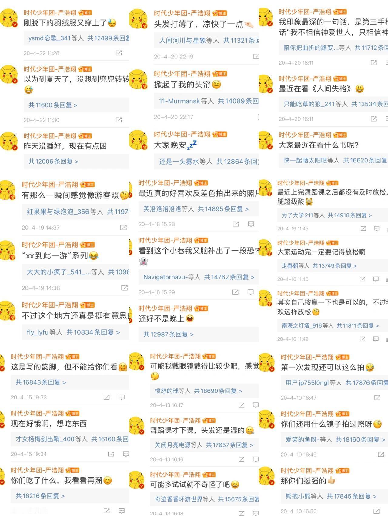 从前的小皮卡和现在的sm,严浩翔的分享欲从未停止…碎碎念的评论、开工收工报备、节日分享、日常生活等等。因为你很重要,所以我才愿意把我的点滴,热气腾腾的分享给你❤️
