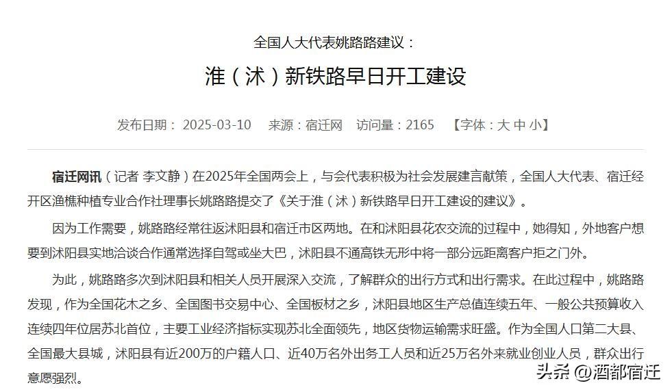 沭阳县高铁的规划建设,向来都是宿迁全市交通发展布局中的关键部分。回顾历年宿迁市政府工作报告,沭阳高铁建设相关表述始终在列;全国两会上,宿迁人大代表也不断为该项目发声呼吁;宿迁市铁路事业发展中心更是积极对接协调,推动前期工作落实。这些切实的举措,皆是宿迁统筹区域交通、助力沭阳发展的有力体现。 然而,部分沭阳群众把项目推进中的正常环节误解成“宿迁不闻不问”,甚至在淮安市提出推进新淮铁路时,以此为借口对宿迁进行不当贬低。这种认知明显与客观事实不符。高铁建设涉及规划审批、线路论证、资金协调等繁杂流程,需要省市联动、多方协作,并非能迅速完成。无论是宿迁的持续推动,还是淮安相关规划的提出,本质上都是为了完善区域铁路网络,最终都是为了服务地方发展、方便群众出行。 看待高铁建设,应立足全局、保持理性,多留意各地为项目付出的努力,少些无端的猜忌与对立。只有摒弃片面观点,凝聚市县协同、区域合作的共识,才能为沭阳高铁建设营造更有利的环境,让交通红利真正惠及更多群众。