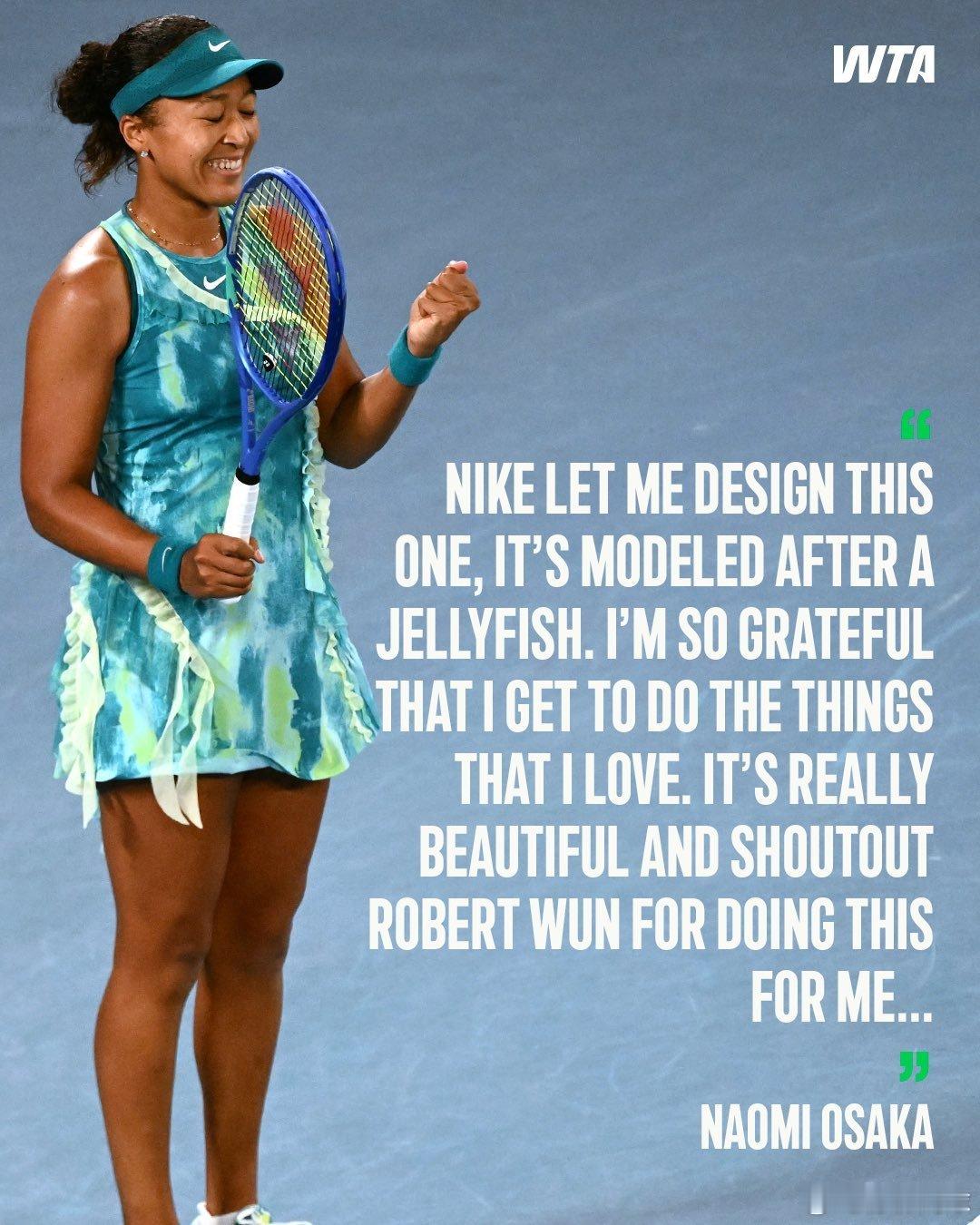 大坂直美赛后说,这衣服她自己参与了设计,她觉得非常开心。灵感来自水母🪼。她觉得很美。这很澳网澳网2026大坂直美晋级澳网次轮
