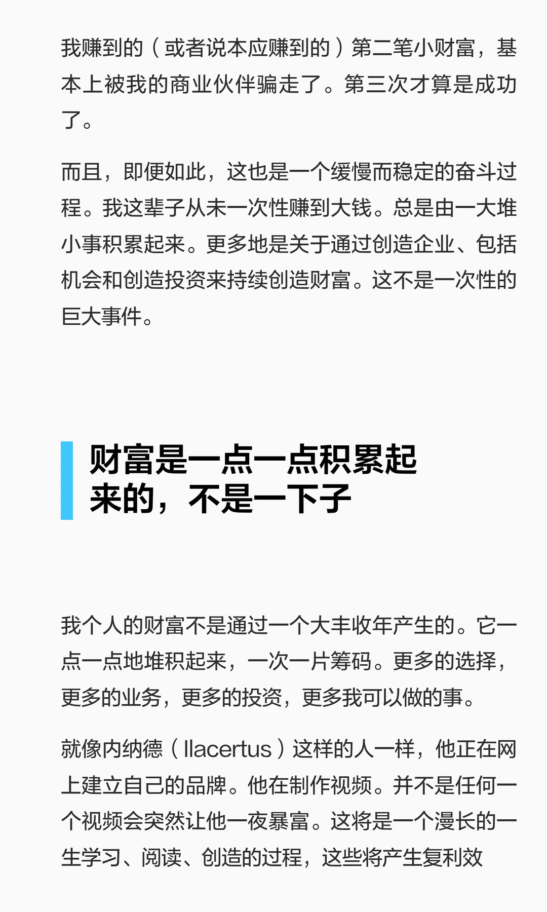 就像内纳德(Ilacertus)这样的人一样,他正在网上建立自己的品牌。他在制作视频。并不是任何一个视频会突然让他一夜暴富。这将是一个漫长的一生学习、阅读、创造的过程,这些将产生复利效应。