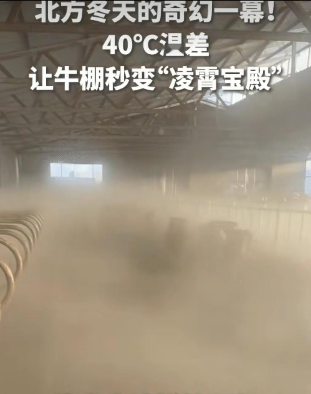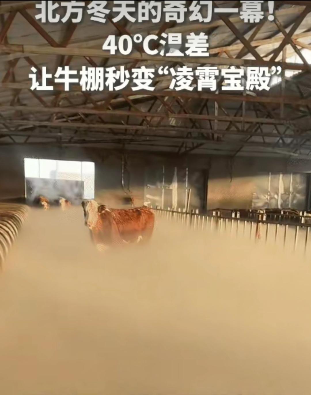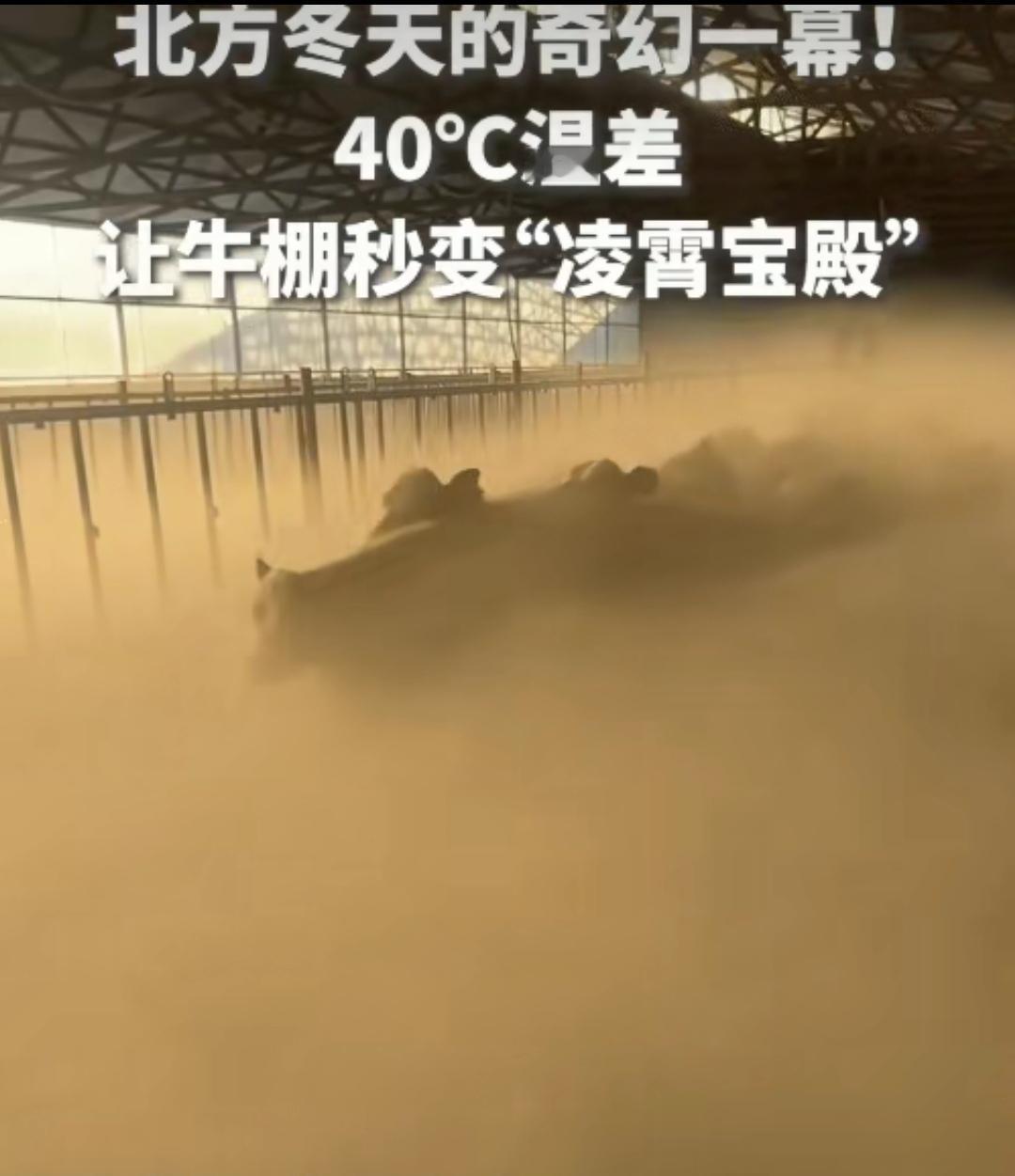 谁能想到,内蒙古锡林郭勒的一个普通牛棚,竟成了《西游记》同款仙境? 女子清晨推开棚门的瞬间,直接看愣——一群牛在白茫茫的雾气里晃悠奔跑,四蹄仿佛踩着云朵,活脱脱“牛魔王”下凡腾云驾雾,这画面简直颠覆想象! 要知道当天的锡林郭勒冷到什么程度?室外气温飙到零下30℃,呵口气都能冻成冰粒,可牛棚里却暖烘烘的,靠着牛群自身的体温和封闭环境,温度稳稳停在5到10℃,里外温差足足有三四十度。就是这巨大的温差,造就了这场“冬日魔法”:冷气流一冲进暖棚,棚里的暖湿空气立马“受了凉”,瞬间凝结成无数肉眼难辨的小水珠,密密麻麻聚在一起,就成了翻涌的白雾。 视频传到网上,网友们的评论快把人笑晕了:“活这么大,真假美猴王见多了,真假牛魔王还是头回见!”“这不是弼马温当年管神仙坐骑的地方吗?一模一样!”南方网友更是实名羡慕:“零下40度的浪漫,果然是北方人的专属,我们只能隔着屏幕眼馋!”还有人调侃:“明明隔着屏幕都能感受到刺骨的冷,却被这群‘踏云牛’治愈了,牛棚秒变水晶宫,这才是冬天该有的样子啊!” 其实这种温差凝结的现象,在北方寒冬不算新鲜事,可偏偏发生在牛棚里,配上牛群甩着尾巴、迈着大步的憨态,就成了可遇不可求的奇景。老话常说“生活处处有惊喜”,大自然这位“顶级导演”从不用刻意布景,只用温差当画笔,就能在平平无奇的牧区日常里,勾勒出比电影特效还震撼的画面。 这些“牛踏祥云”的瞬间,看似是神话场景,实则是最朴素的物理规律在“露一手”。生活中的美好从来都不遥远,冬天窗户上的冰花、说话时飘出的白气,甚至是清晨草地里的霜露,都是大自然悄悄上演的小剧场。只要我们带着好奇心去观察,就会发现,那些看似平凡的日常里,藏着无数让人惊叹的小秘密,而科学与生活的碰撞,总能绽放出最动人的火花。