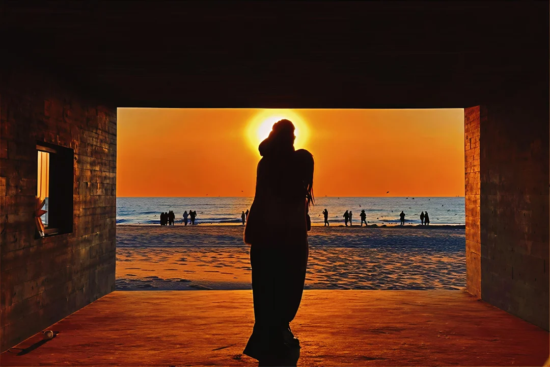 ✅ 蹲在礁石上拍剪影超有氛围感!📸手机原相机直出都像加了滤镜,连发丝都在发光✨