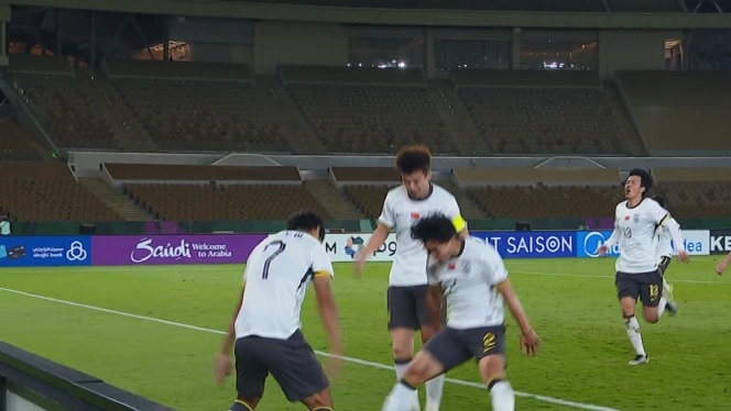 #u23国足SIU起来了##u23国足5分钟2球# 向余望破门后,模仿C罗SIUUU庆祝动作!小伙伴们纷纷效仿!#u23国足vs越南#