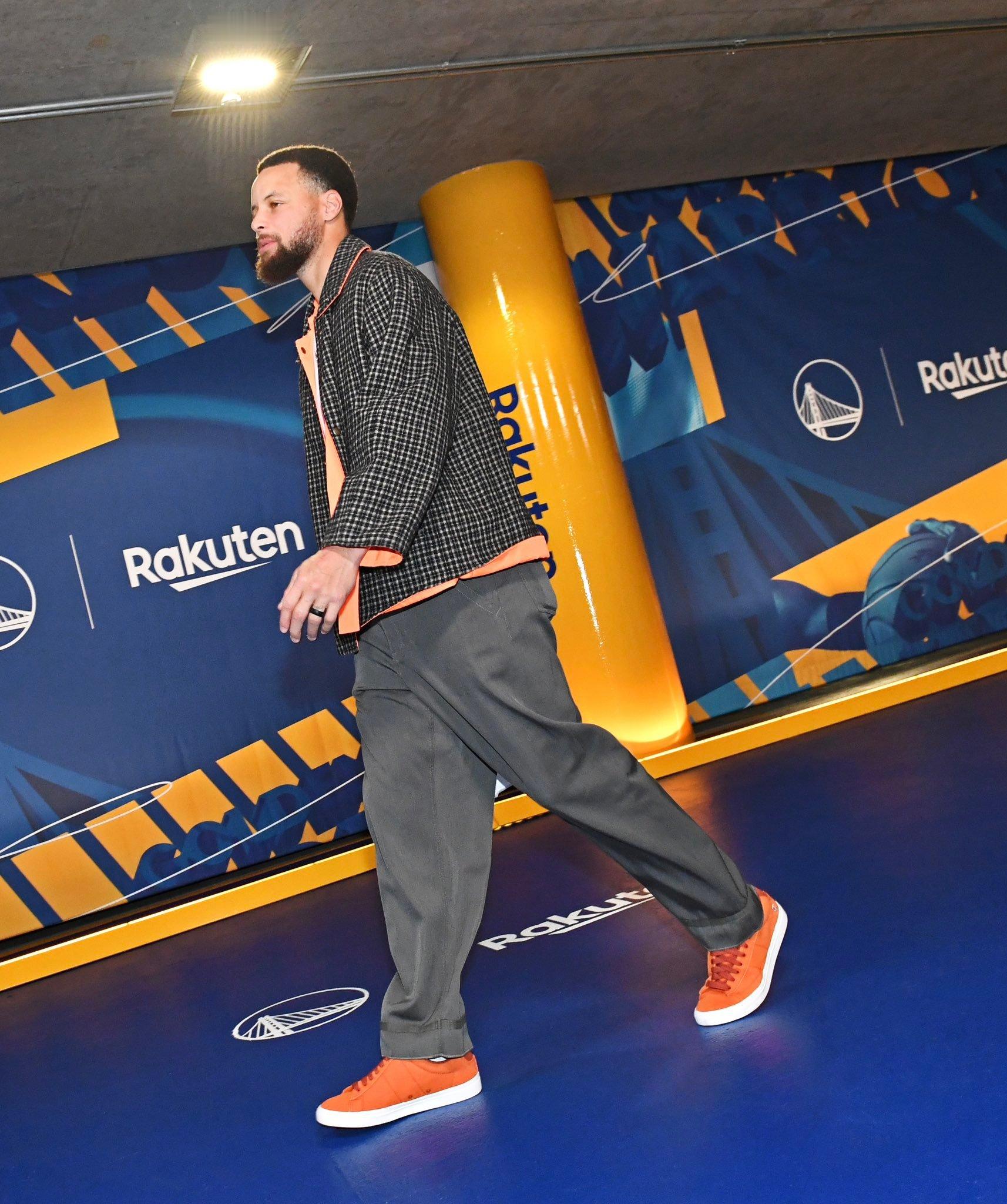 库里今日上脚:赛前穿搭上脚Devin Booker x Blazer Low,训练比赛穿了韦德之道12金州勇士