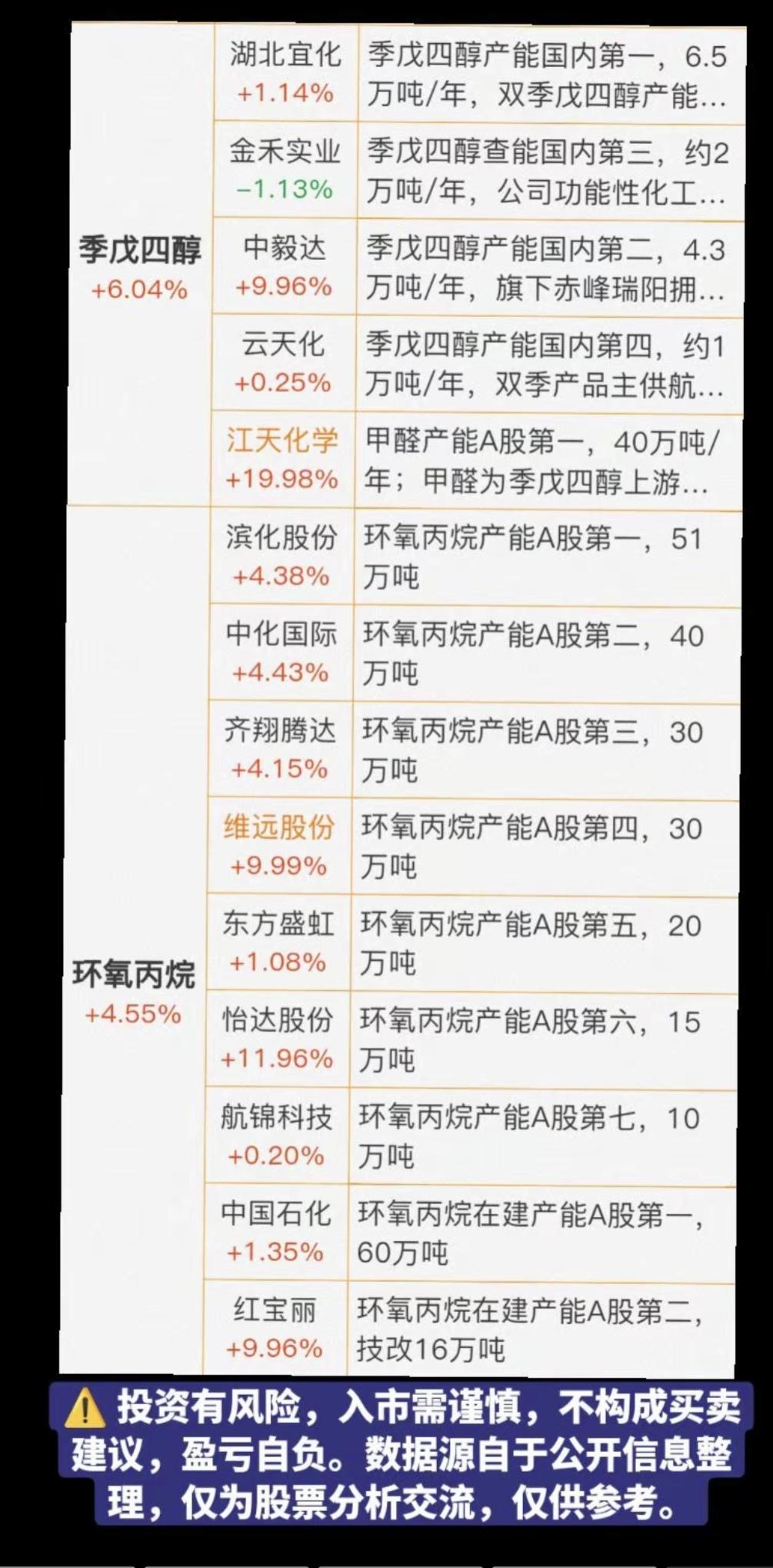 化工品涨价潮来袭!相关概念股分享: 巴斯夫,陶氏,亨司迈等国际化工巨头开始提价,国内产品响应。 相关核心龙头股:
