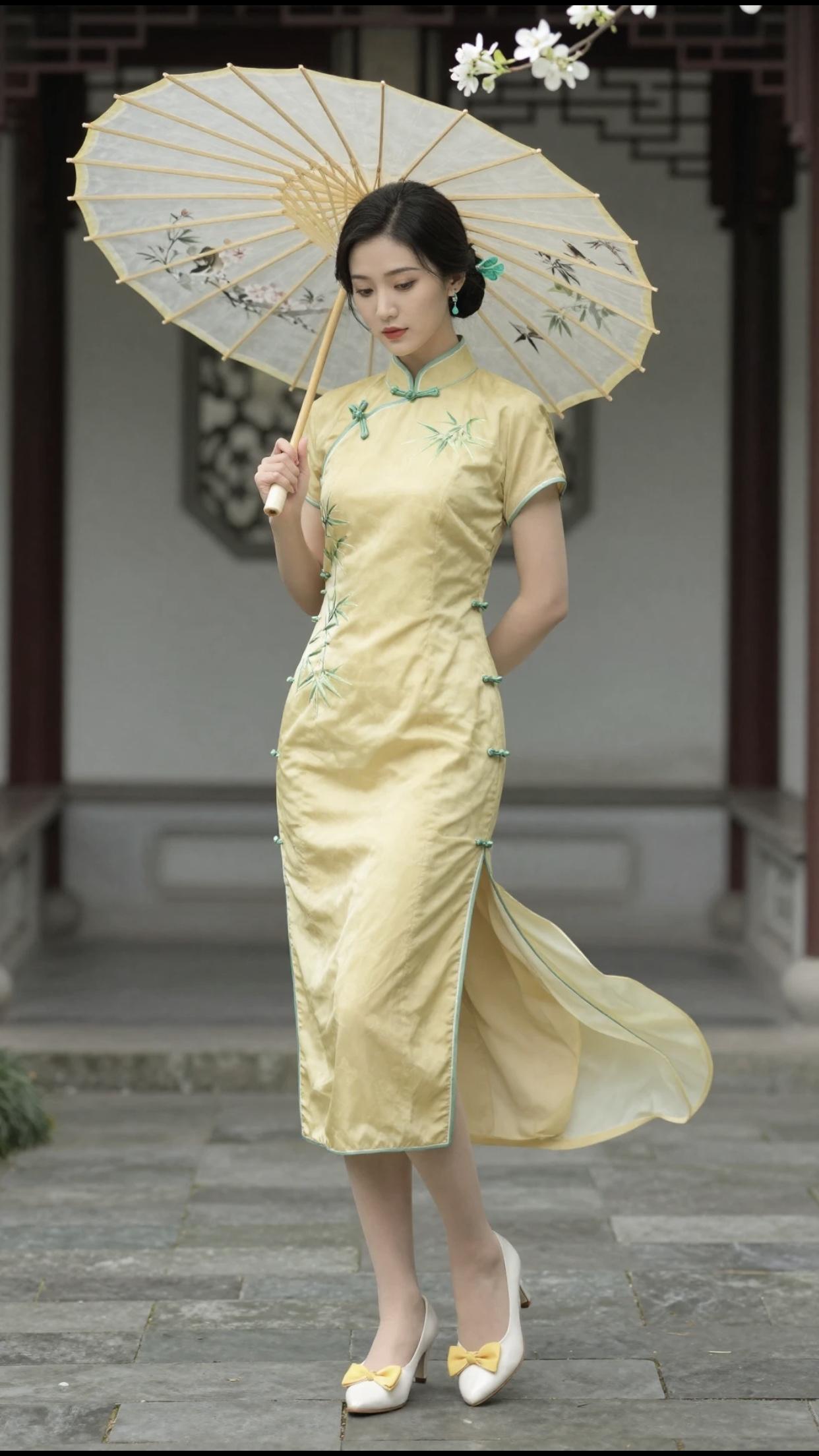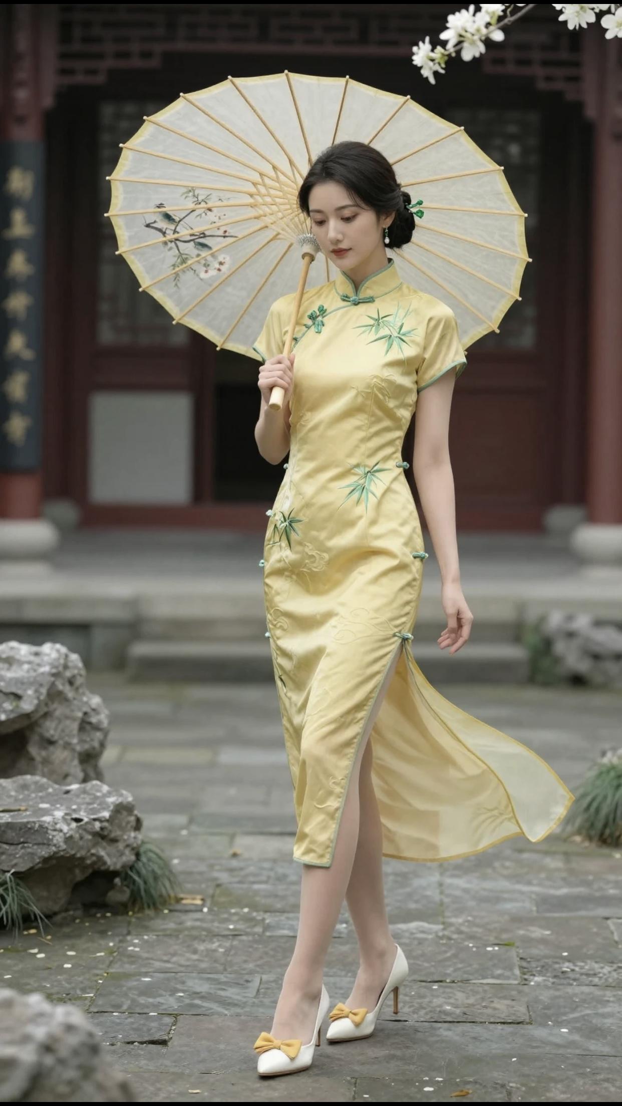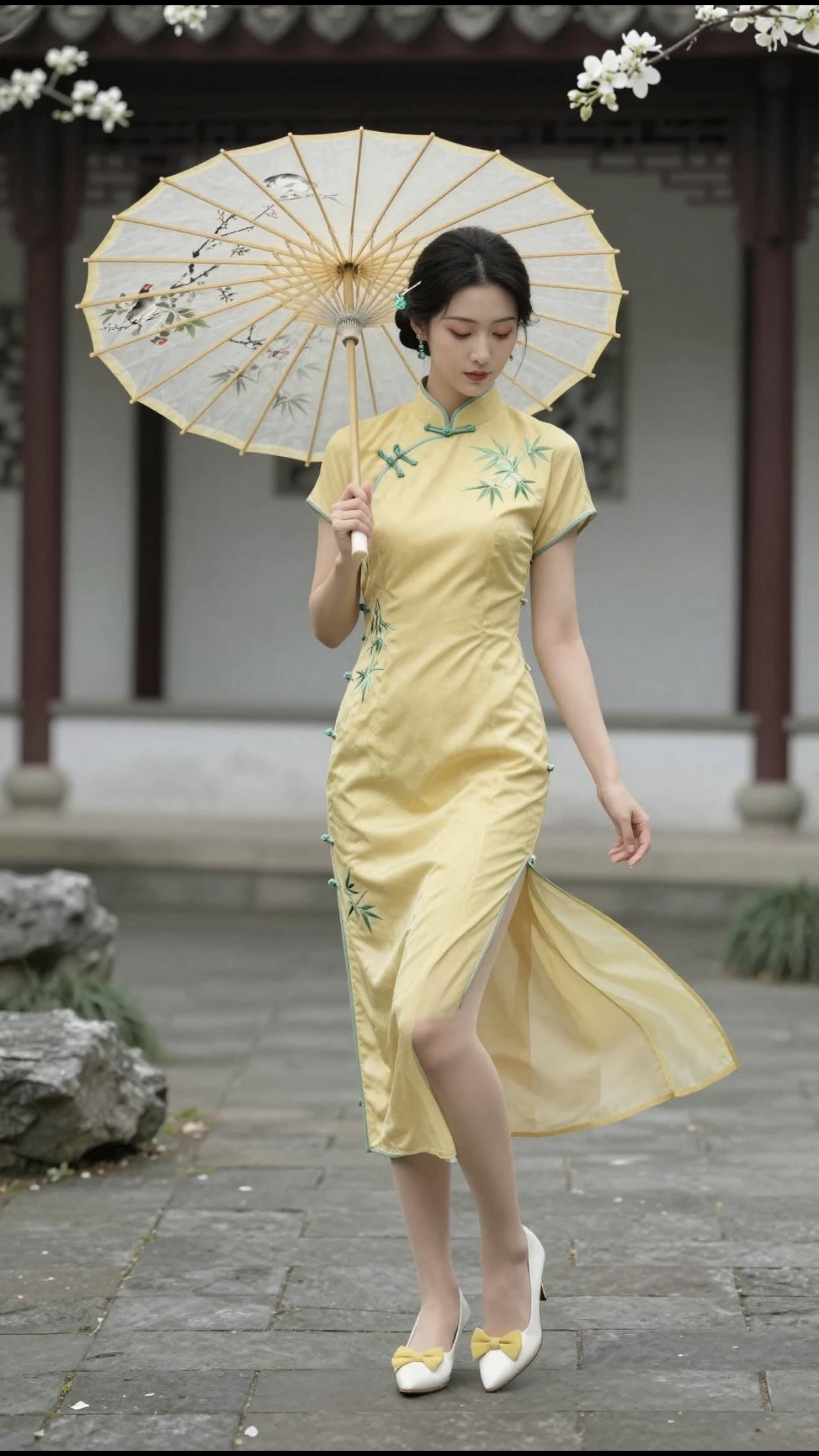 古典雅致,黄衣美人撑伞漫步,古风韵味十足。黄衣少女的春景 国风撑伞写真