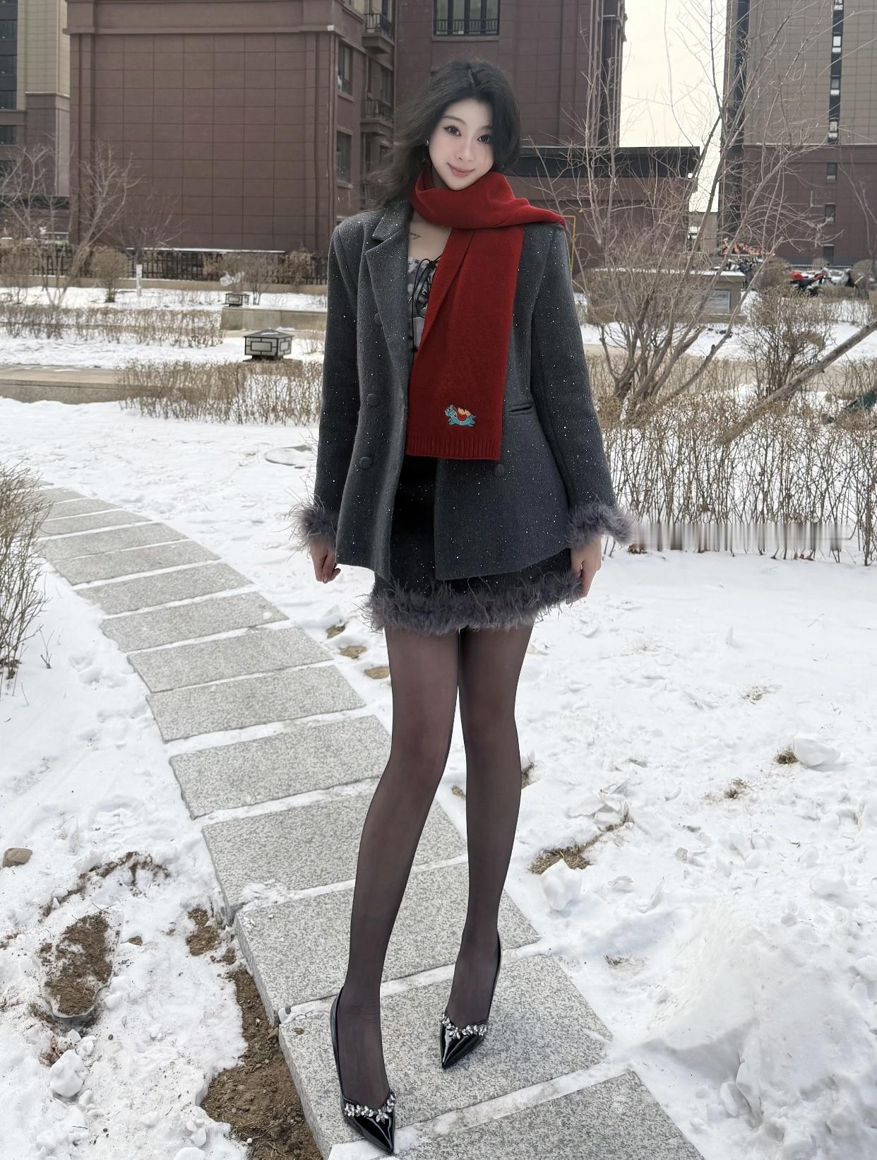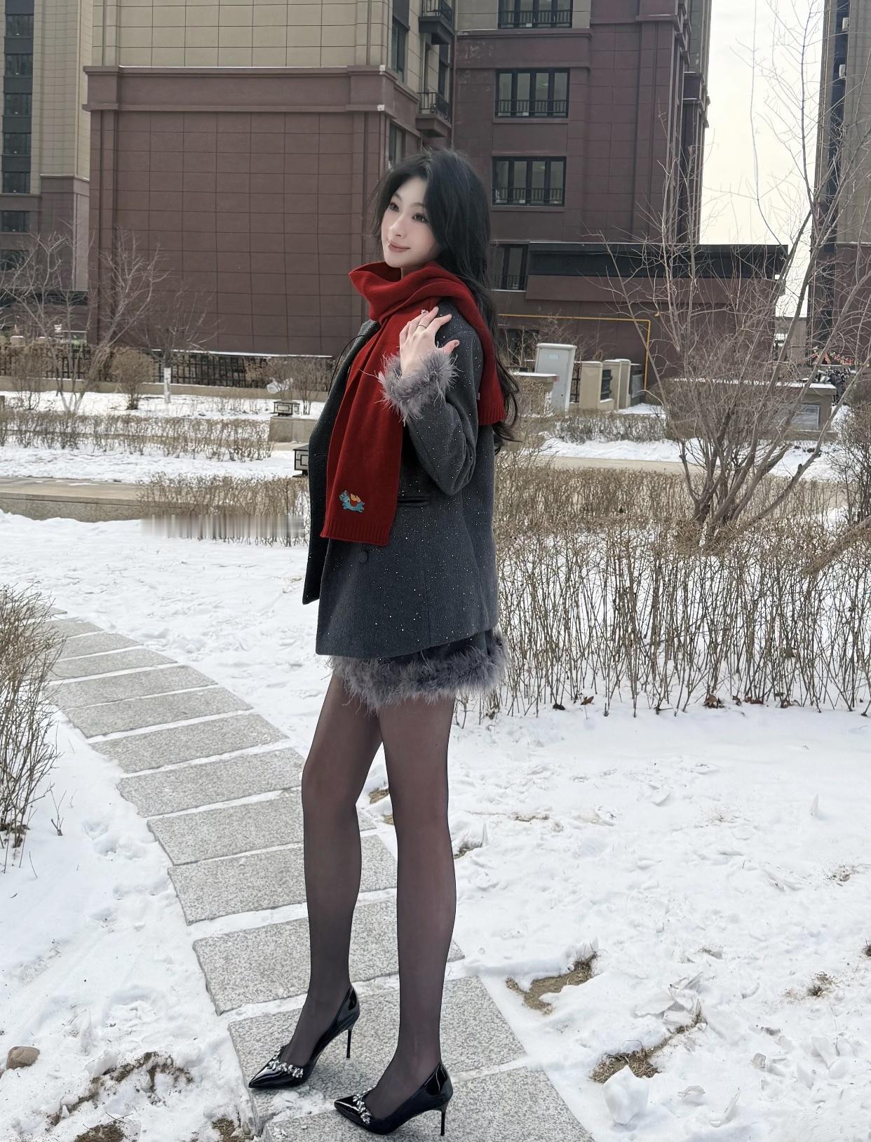 在山水间,静享黑裙与高跟鞋的优雅时光。
