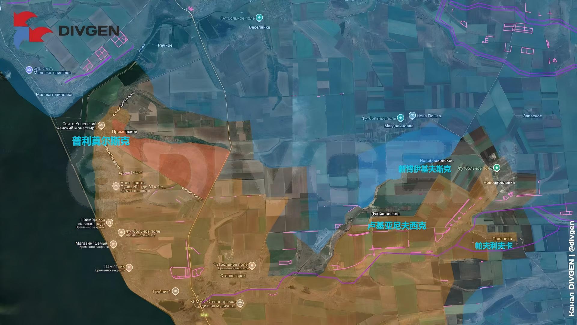 扎波罗热方向,滨海区普利莫尔斯克东南地区,空降兵继续扩展,乌军还是很尽责的,俄军前进很缓慢,要是不硬挺,过了孔卡河就难办了。