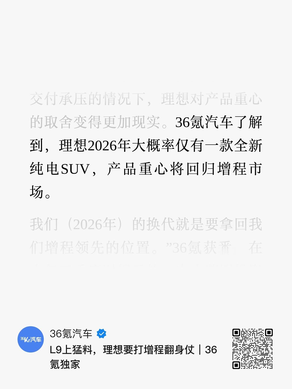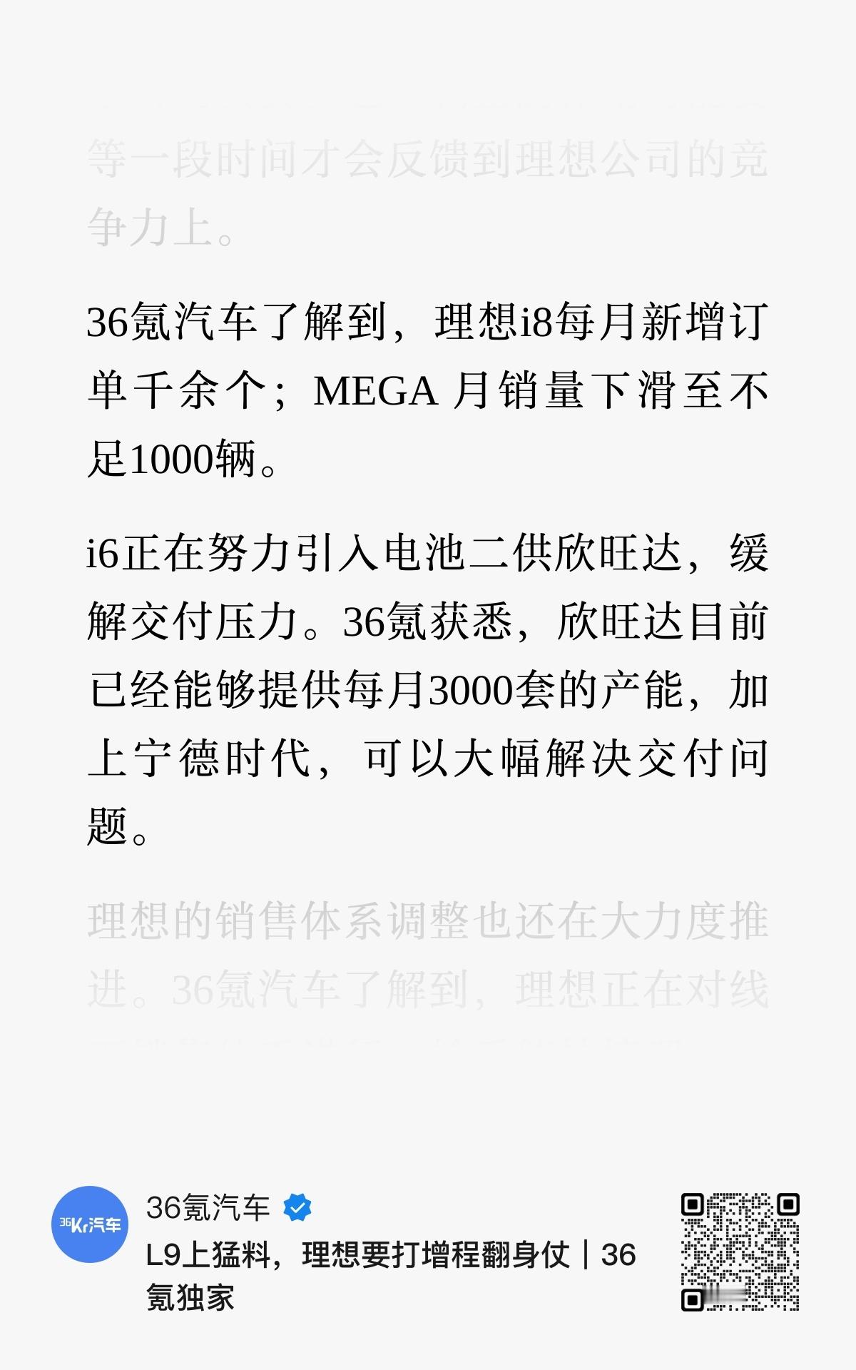 36氪消息,26年是想子的「增程保卫战」L9,会配70度电池,纯电续航400+,智驾配M100,座舱配高通8797芯片。L6电池达到45度。另外,大概率26年只有一款新纯电SUV(i9?) ,主要聚焦增程市场。i8目前订单每月千余个,MEGA不到1K,i6的欣旺达月供产能3000套…根据36氪的消息,据说26年只给出了55w的销量目标。我的看法:刨除杂念,聚焦产品和用户价值,干好自己的事;另外舆论风向稍微把一把