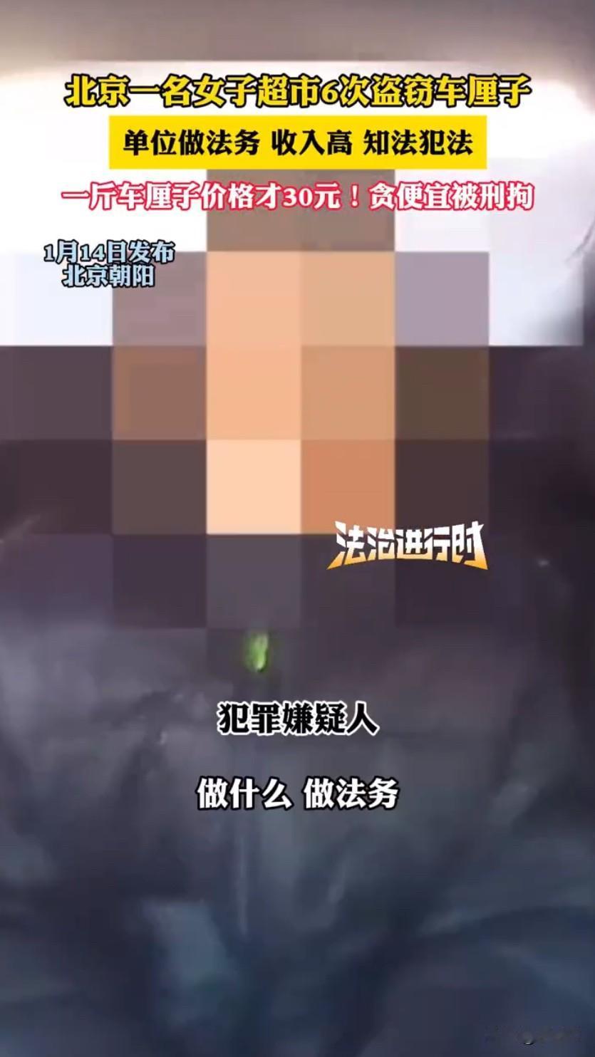 北京朝阳区一家超市遇上了件闹心事儿,店里的车厘子总莫名少货,工作人员在货架角落还常发现空的车厘子包装盒,察觉不对劲后赶紧报了警,谁料警方调查后揪出的嫌疑人,竟是一位看着体面、月收入不低的公司法务,这事儿让所有人都觉得意外。 监控里把女子的作案过程拍得一清二楚,她每次来超市都会挑些商品,却专找没人的角落停下,把车厘子这类商品的包装盒拆开,将里面的东西倒进自己的随身包,还会偷偷撕掉商品价签,之后拿着其他选好的商品正常结账,想用这种方式掩人耳目,假装自己什么都没拿。超市工作人员发现她的小动作后,回头翻查过往监控,才发现这根本不是她第一次这么做,她的盗窃行为已经持续了好几次,胃口还越来越大。 最开始她只是偷一小盒蓝莓,见一直没被发现,胆子就慢慢大了起来,后来直接偷三盒车厘子,还顺带拿一个木瓜,到最后,散装的干果、饼干这类零食也成了她的目标,前前后后加起来,她已经在这家超市盗窃了六次。而这一切的开端,只是因为女子一次偶然的发现,她常来这家超市购物,有次回家核对购物小票,发现有件标签缺失的商品没被结账,收银员没注意,超市安检门也没报警,这让她萌生了占小便宜的侥幸心理,觉得超市的结账漏洞可以钻,这才一步步走上了盗窃的路。 警方接到超市的报案后,让工作人员整理好监控等证据材料,随后直接找到了这名女子。面对突然到访的民警,她一开始还想装作不知情狡辩,可当民警提起涉事超市的名字,她瞬间眼神慌乱,知道瞒不住了,只能如实招供自己的盗窃行为。 案发之后,这名女子追悔莫及,知道自己的行为已经触犯了法律,主动向超市提出想要以一赔十的方式进行退赔,希望能得到超市的谅解,可法律的红线不会因为她的悔意就轻易跨过。目前,这位女子因为涉嫌盗窃,已经被朝阳警方依法刑事拘留,原本有着体面工作和不错收入的她,只因一时的贪念和侥幸,亲手给自己的人生抹上了污点。上班是法务下班是偷车厘子惯犯 北京一公司法务频繁偷超市车厘子 来源:法治进行时