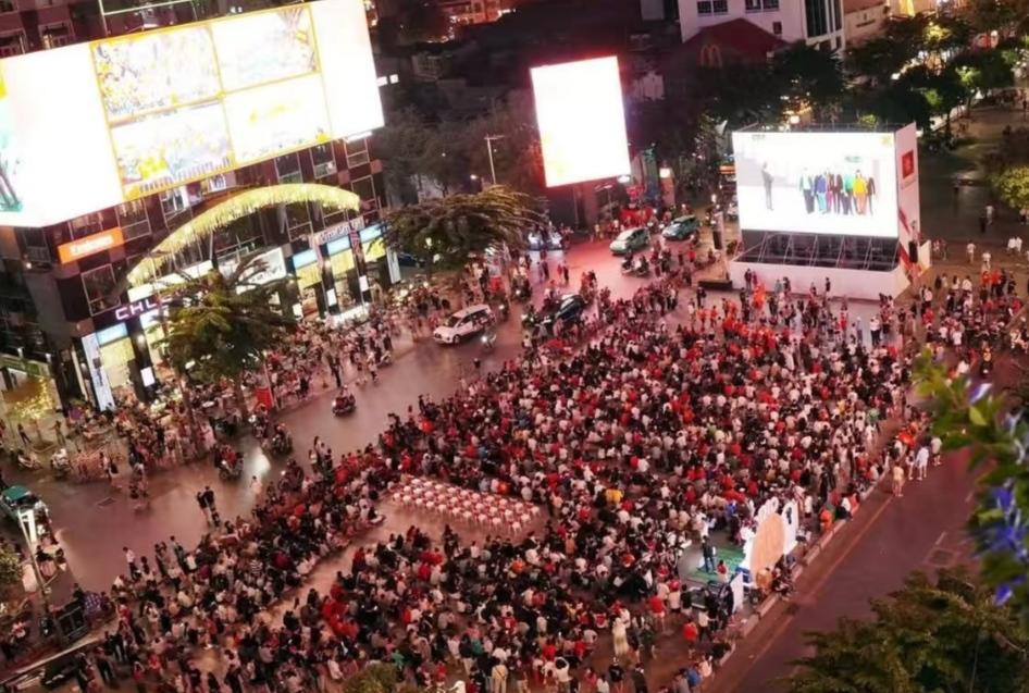 昨晚这场球,越南人整的场面比我们大多了,街上的大屏幕比比皆是! 赢了阿联酋队彻底点燃了他们的热情和幻想! 怎么说越南球迷呢,我觉得他们也算是体验了什么叫“黑色三分钟”! 他们的球队真把自己当成夺冠大热门了,还敢打对攻!真让人笑不活了! 昨晚他们要是龟缩防守,打反击,或许还能有机会。 可惜,没认清自己!