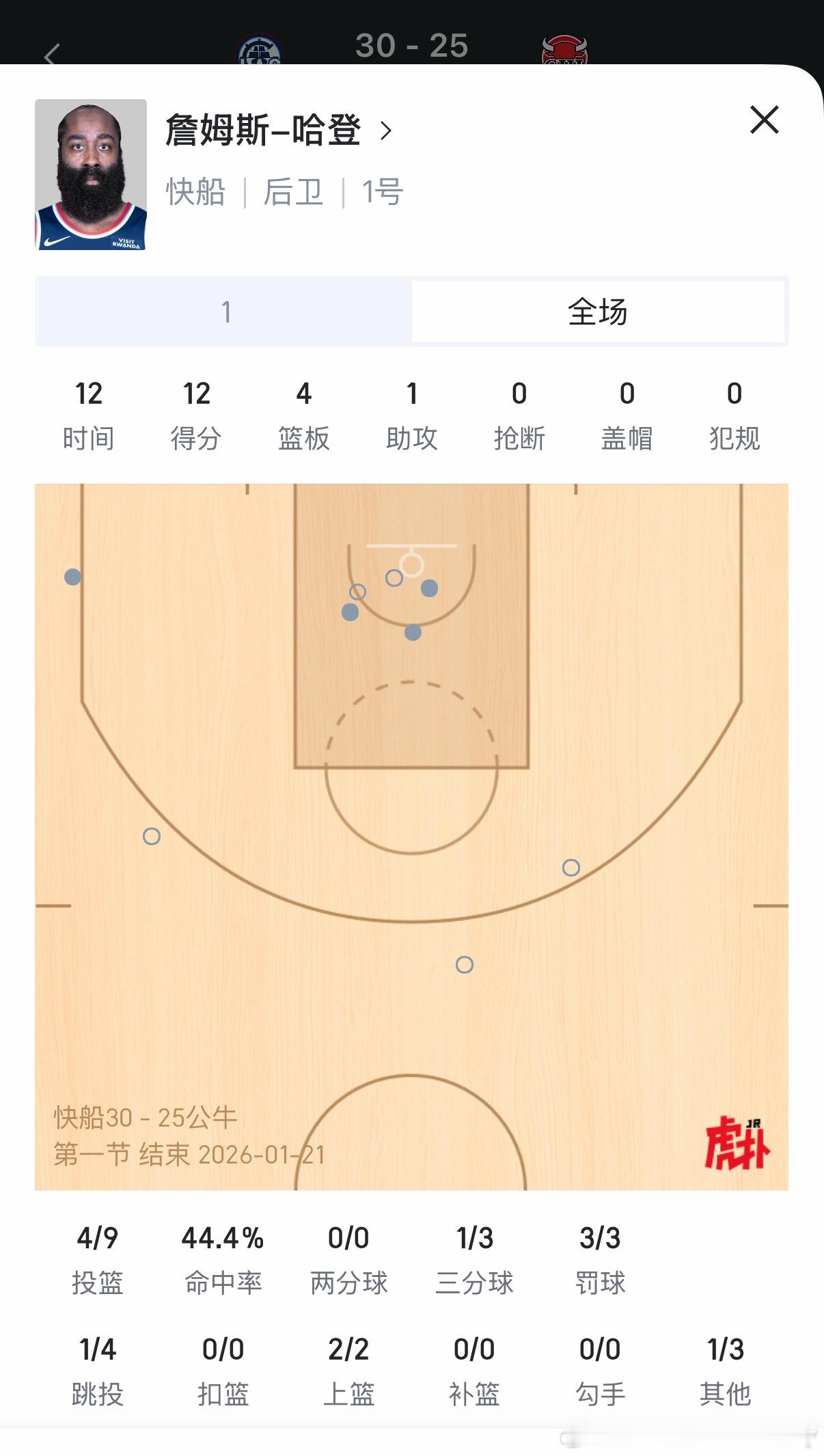 船记:过去五场加一节比赛,詹姆斯·哈登的三分球命中率大幅下滑:他最近50次三分出