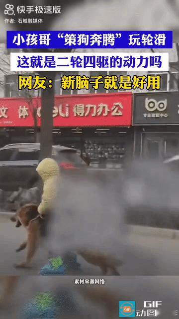“策狗奔腾!”大马路上一个男孩弓着腰快速往前移动,本以为它在策马奔腾,没想到是策狗奔腾。只见男孩脚上穿着四轮旱冰鞋,跨坐在狗狗背上,双手紧紧抓着狗狗的项圈,狗狗快速往前跑,男孩也就跟着滑行,那样子可不就像在骑马吗? 网友看到这一幕是震惊又羡慕: 有网友捶胸顿足地说:所以,当年有滑轮的为啥没想到![发怒][发怒][发怒] 也有网友咬牙切齿地说:不行必须举报,因为我小时候没玩过。[流泪][流泪][流泪] 还有网友双眼冒星星地说:嘿嘿,我也有鞋,我还有只狗,我也想试试![灵光一闪][灵光一闪] 更有网友感叹:这才是,纯德系—四驱! 哈哈哈,是不是都在后悔当初怎么没这么玩,所以啊论玩还的看新一代小朋友,鬼点子可多了。这下遛狗带娃都是有了,你就说拉风不拉风吧! (视频来源:石城融媒体,侵删[祈祷])