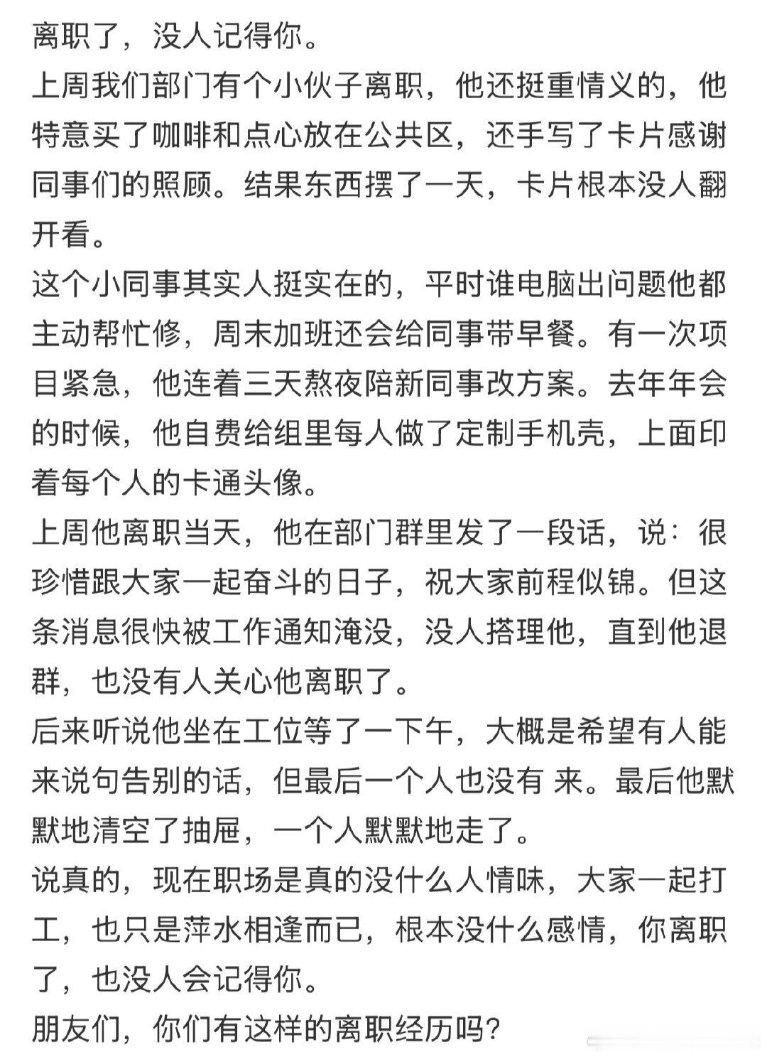 离职后,人们似乎已忘记你的存在。