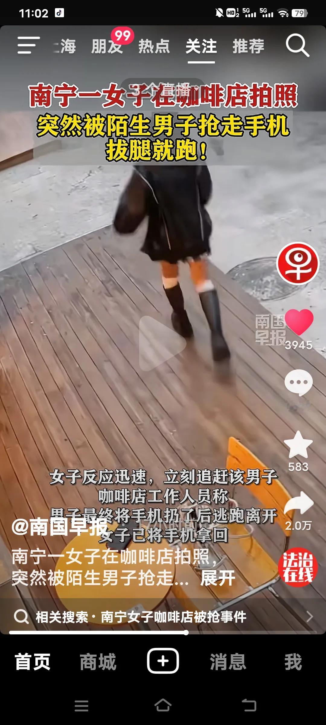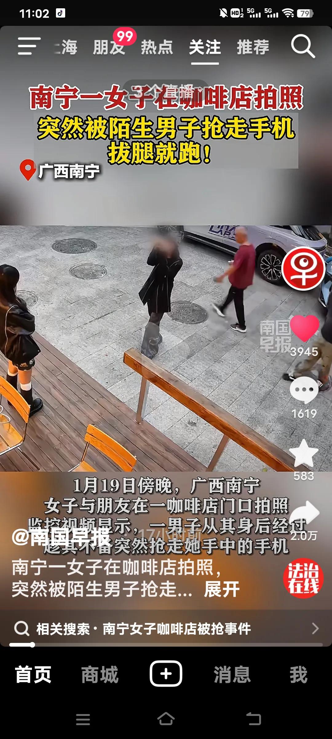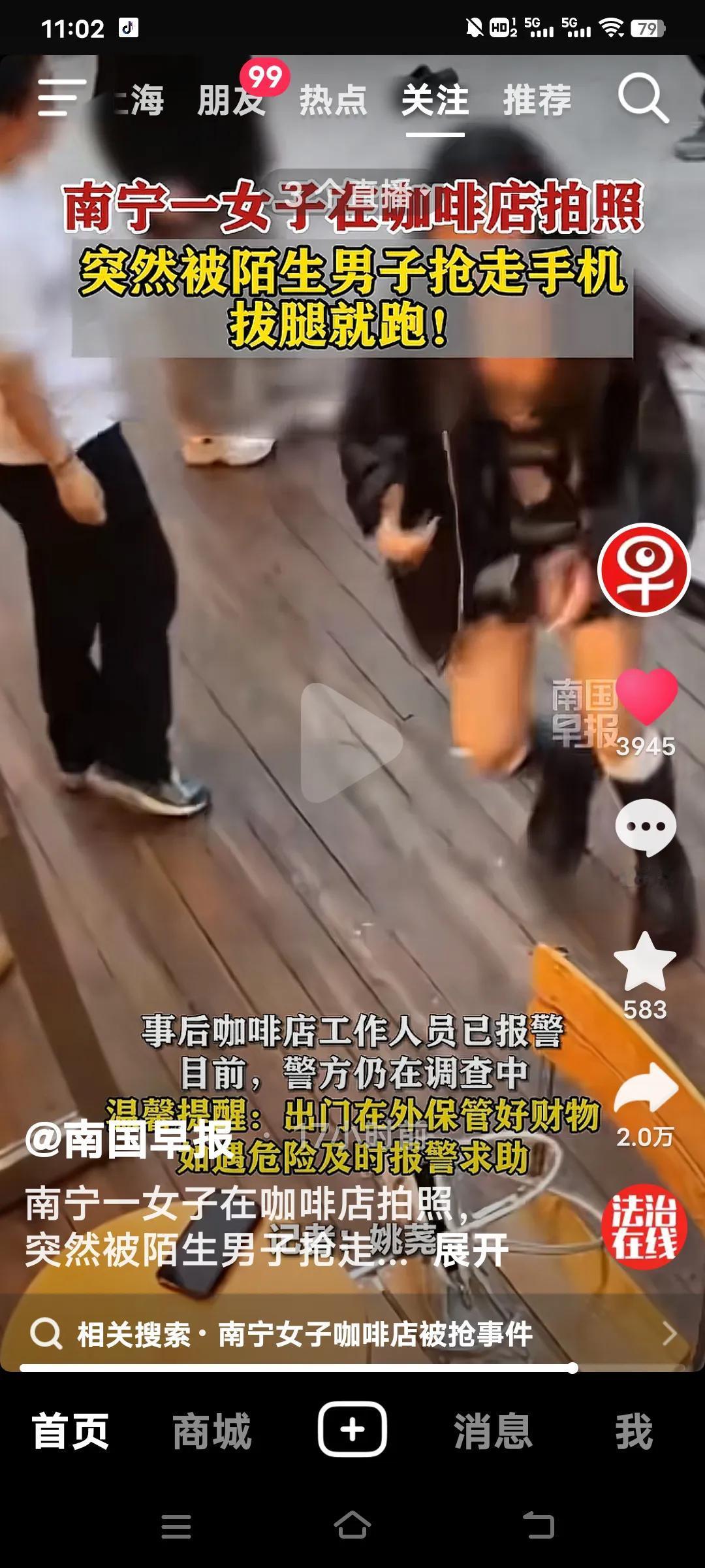 这做法也太蠢了!1月19日,在广西南宁,一名女子正在咖啡店里惬意地拍照,手机却被一名陌生男子抢走。好在女子反应敏捷,很快就把手机追了回来! 类似的情况并非个例,何苦如此呢?接下来就等着走法律程序吧!这简直是搬起石头砸自己的脚,得不偿失,还落得个“声名远扬”。 俗话说得好,穷了穷过富了富过,千万不能有偷抢的念头。四肢发达,能劳动,干嘛要去偷别人的好手机呢?难道连个手机都买不起吗?这样的人实在让人无语! 手机被抢夺 冬日生活打卡季 南宁咖啡打卡地