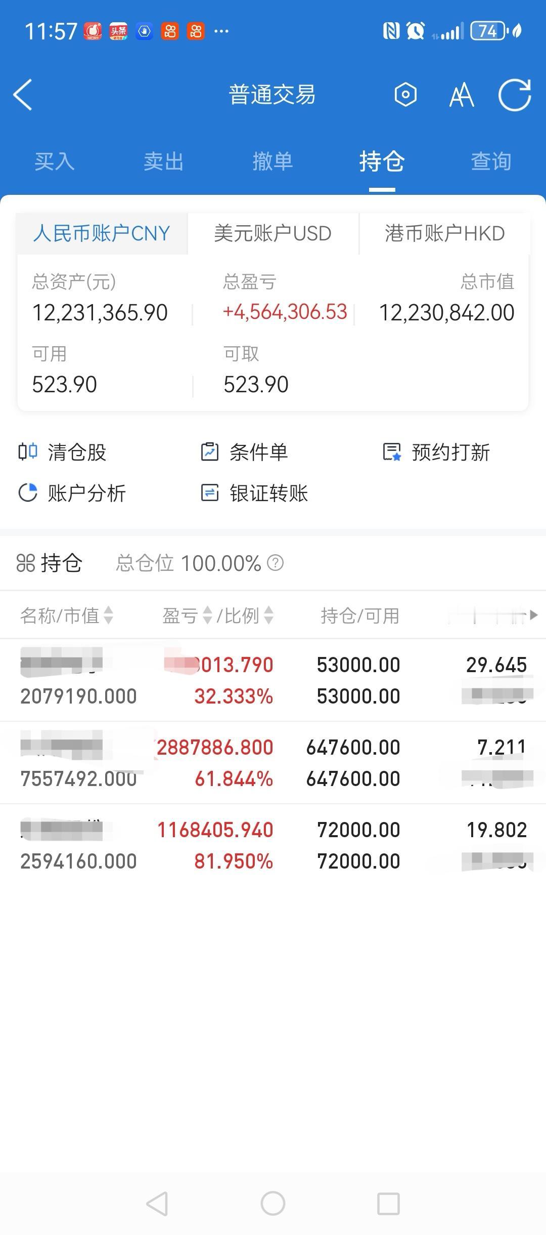 芝麻开花节节高,收益率来到450%了,盈利突破1000万!(明天把今天的数据统计出来,将会实现。)账户资产也站稳1200万。 最近几天,我手中的科技股出现了较大上涨,持续的上涨。 所以,账户收益越来越靓丽。 账户中的三个股票,有一个是电子元器件板块的,表现相对较弱,所以这几天我会择机卖掉。 账户资产,春节前后有可能会达到1500万,值得期待。