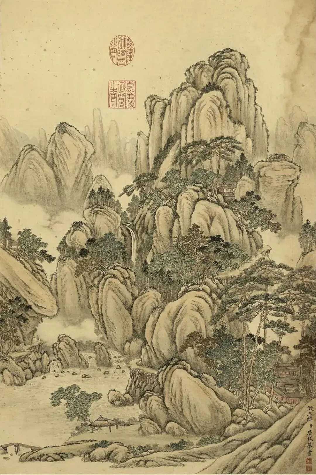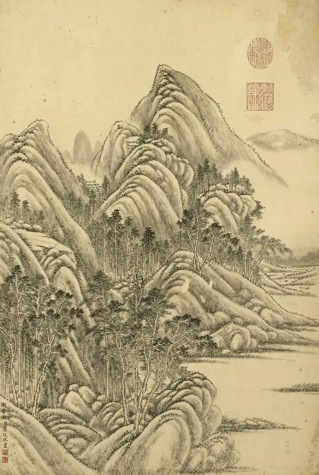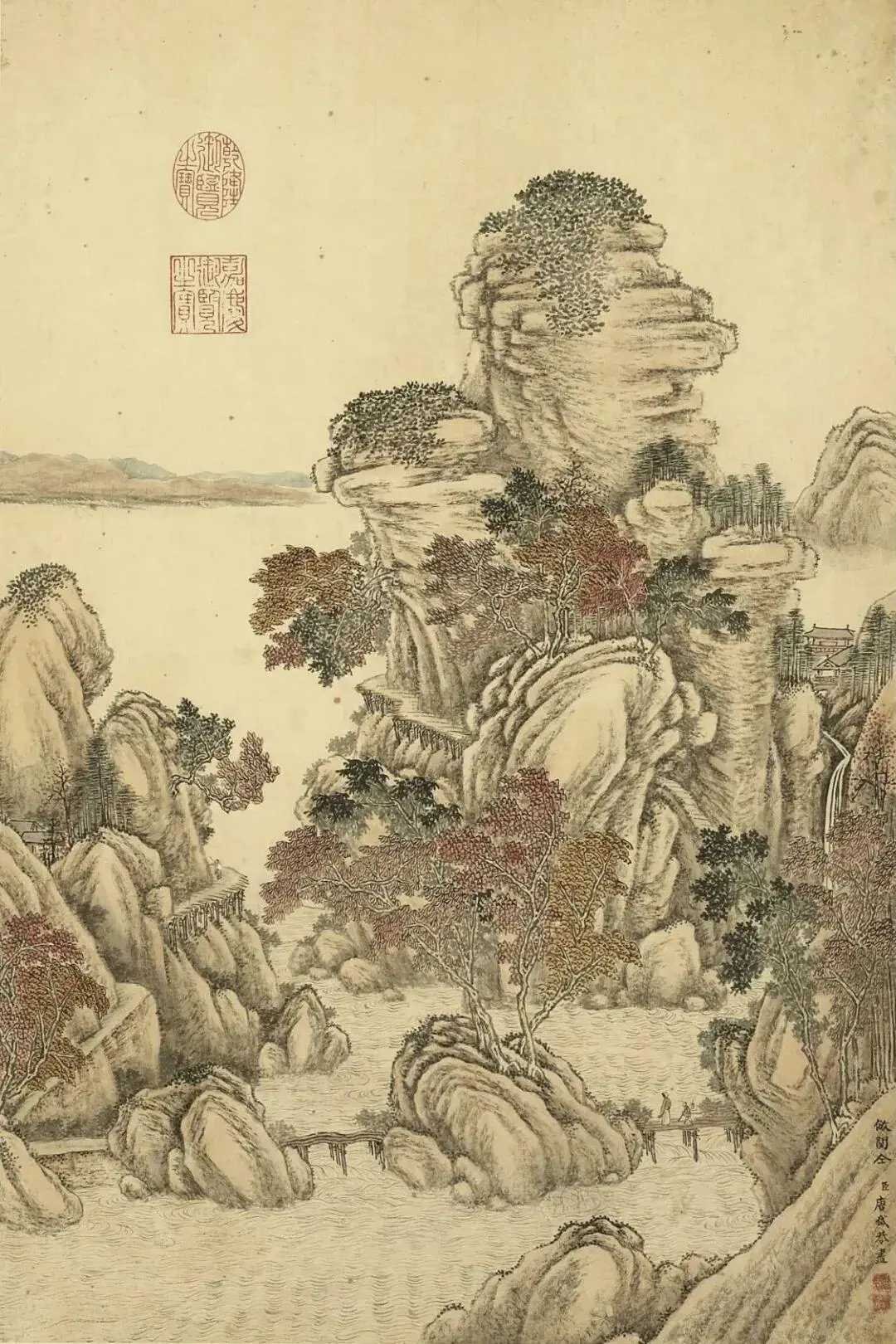 清 唐岱《仿二十四家山水图》。唐岱(1673年—1752年后),字毓东,号静岩、默庄,满洲正蓝旗人,清代画家。师从王原祁,康熙帝赐称“画状元”(与明代吴伟同为历史上仅有的两位获此殊荣的画家),官至内务府总管,著《绘事发微》传世。这就是中国风遇见艺术