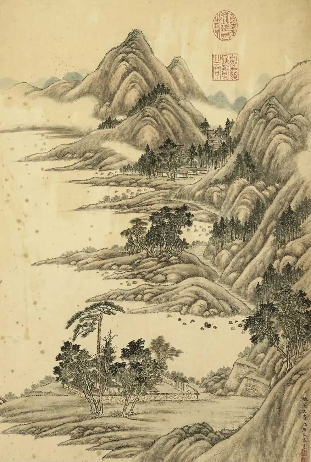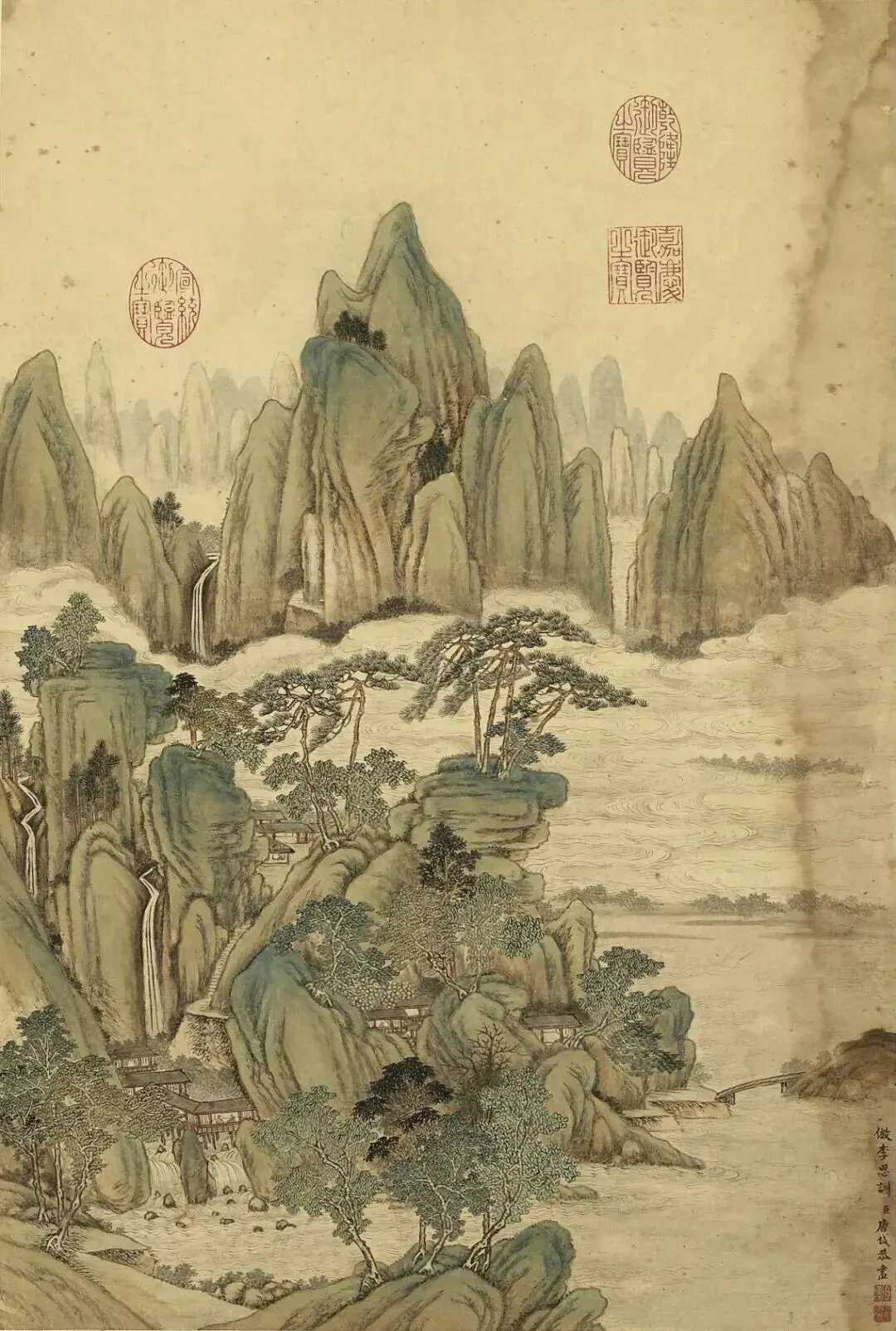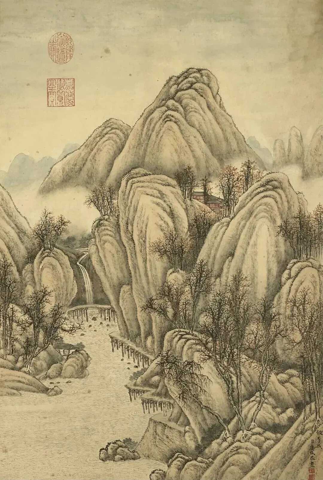 清 唐岱《仿二十四家山水图》。唐岱(1673年—1752年后),字毓东,号静岩、默庄,满洲正蓝旗人,清代画家。师从王原祁,康熙帝赐称“画状元”(与明代吴伟同为历史上仅有的两位获此殊荣的画家),官至内务府总管,著《绘事发微》传世。这就是中国风遇见艺术