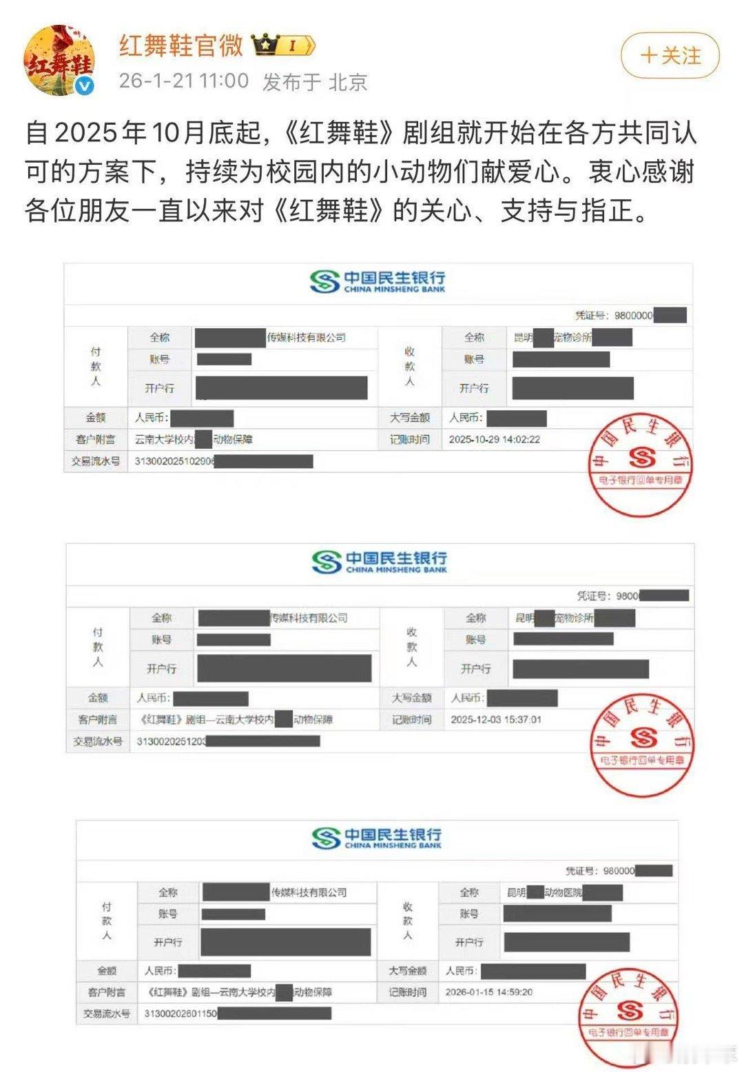 关于红舞鞋相关捐款事宜争议不断,但咱得理性看待呀。捐款金额多少、是否打码处理,这肯定都是剧组跟各方提前沟通好了的。某些营销号就别瞎操心啦,别为了博眼球就随意带节奏,安心等待后续进展就好啦。