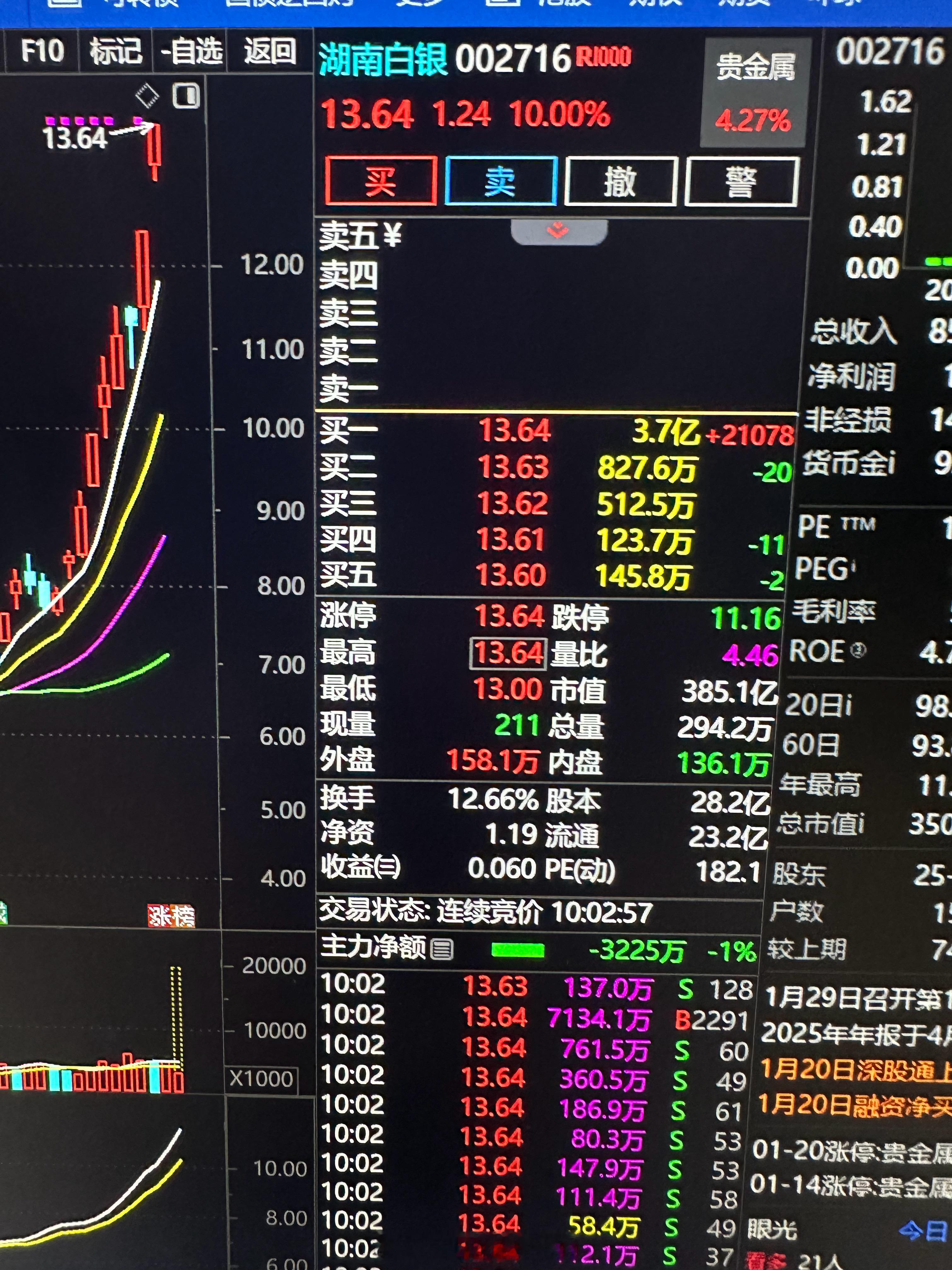漂亮,$湖南白银 sz002716$ 20个点了吧