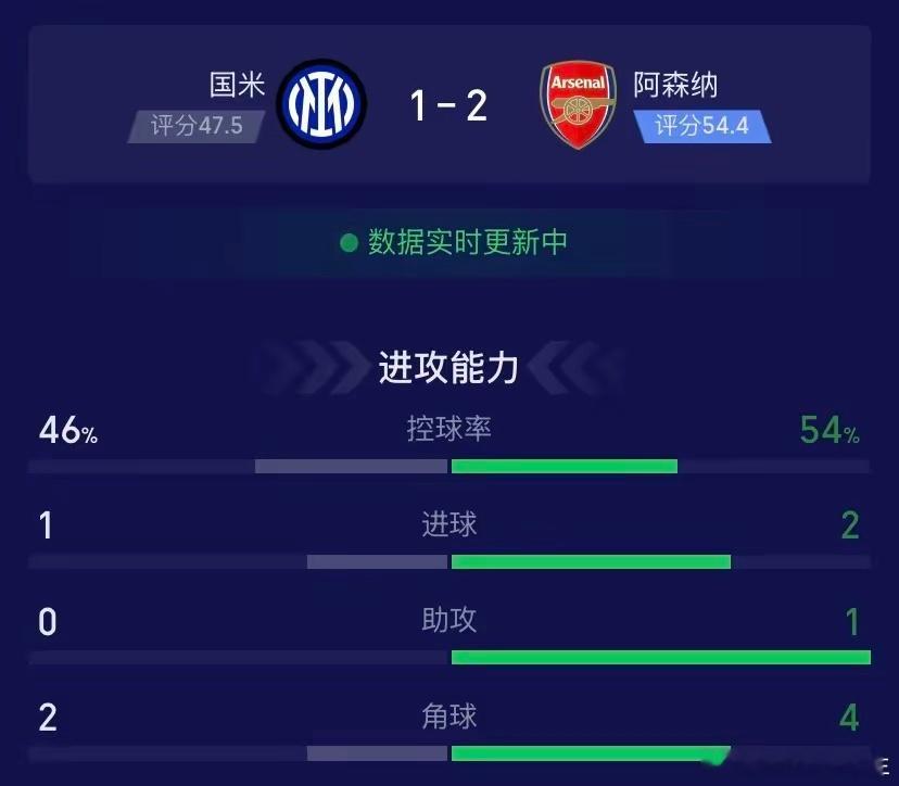 势均力敌!欧冠第7轮国际米兰主场迎战阿森纳,上半场国际米兰1:2暂时落后,阿森纳的热苏斯梅开二度,国际米兰的苏西奇世界波破门。这是一个精彩的上半场,双方大打攻势足球,攻防转换节奏快,不愧是强强对决。虽然国际米兰比分落后,但过程看双方势均力敌,均有不错的机会。不过国际米兰的防线上半场表现不佳,特别是两个边翼卫防守漏洞较大。希望下半场国际米兰把握机会的能力能有所提升以及防守端工作能做的更好些,全力争胜,毕竟事关欧冠直通。足球欧冠国米阿森纳