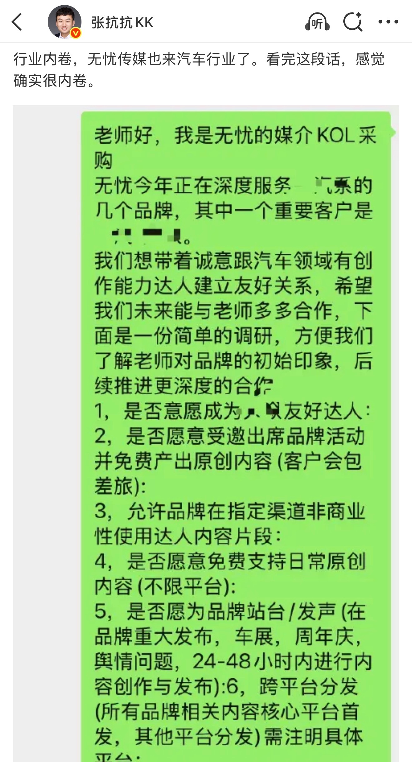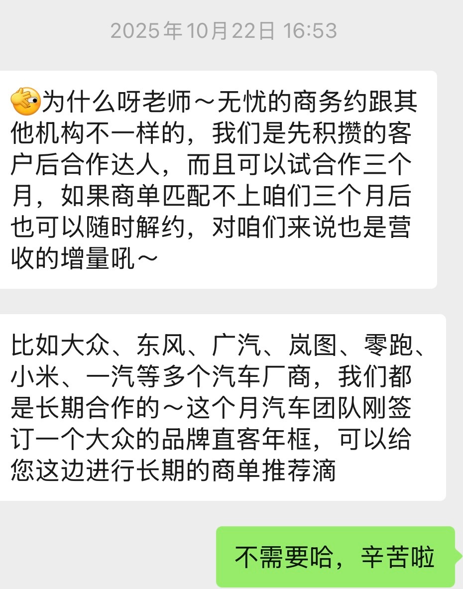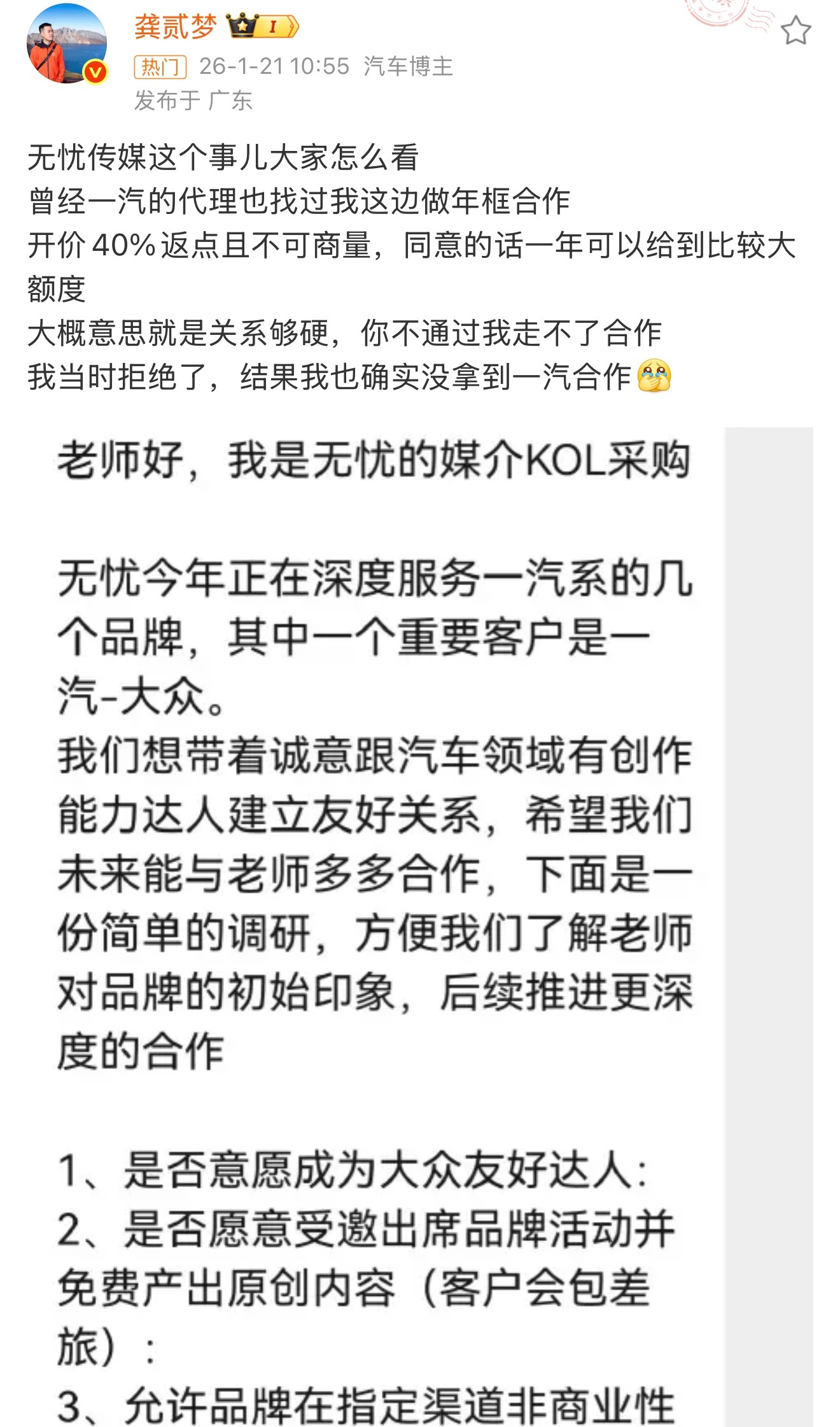 无忧传媒也开始接入代理公司的业务了网传首批是拿下了一汽大众的直客年框疯狂的在签约达人。