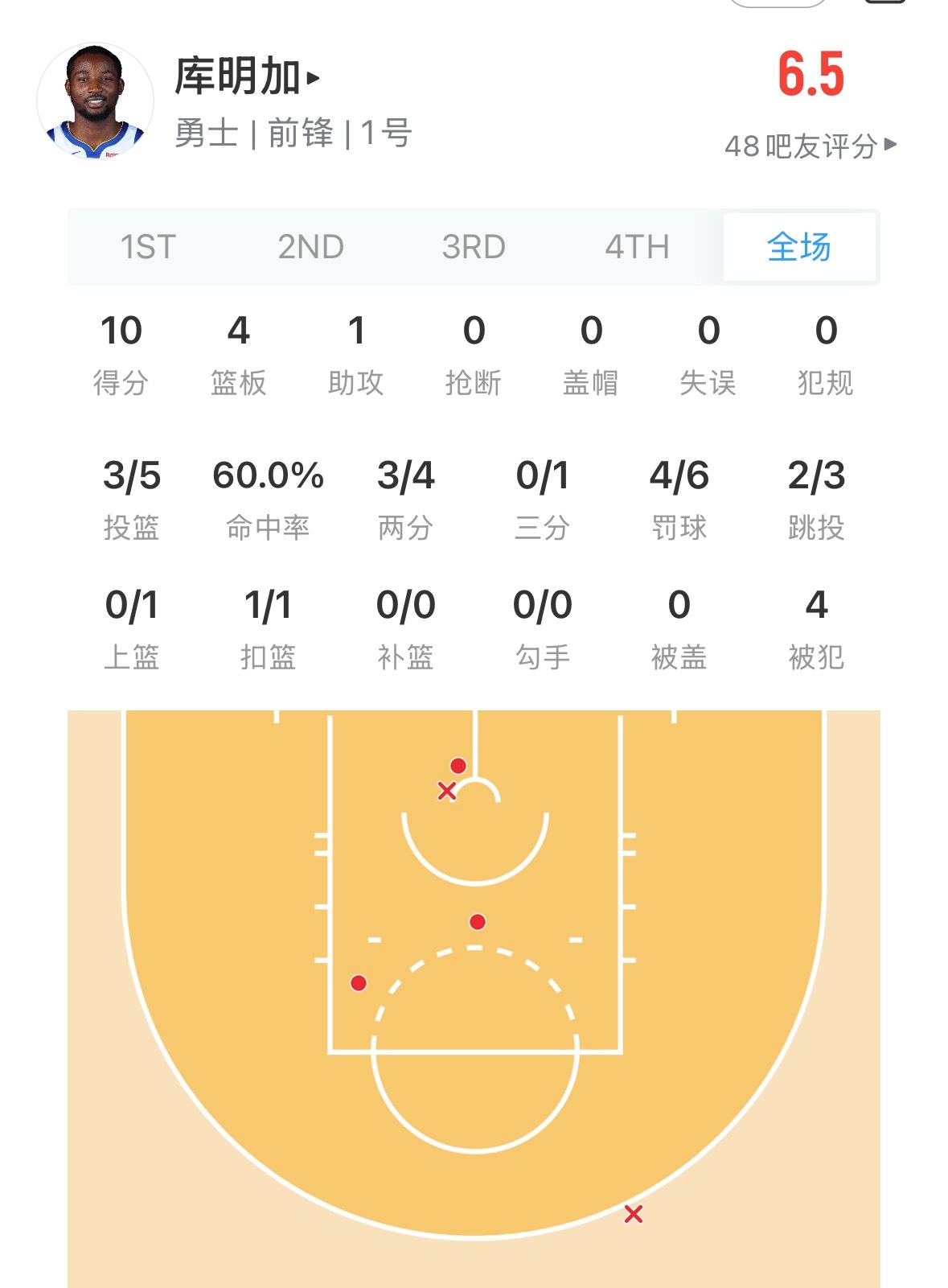 这哥们太准了 上场比赛他就得9分 今天打勇士这命中率太恐怖了 40分就投丢2球