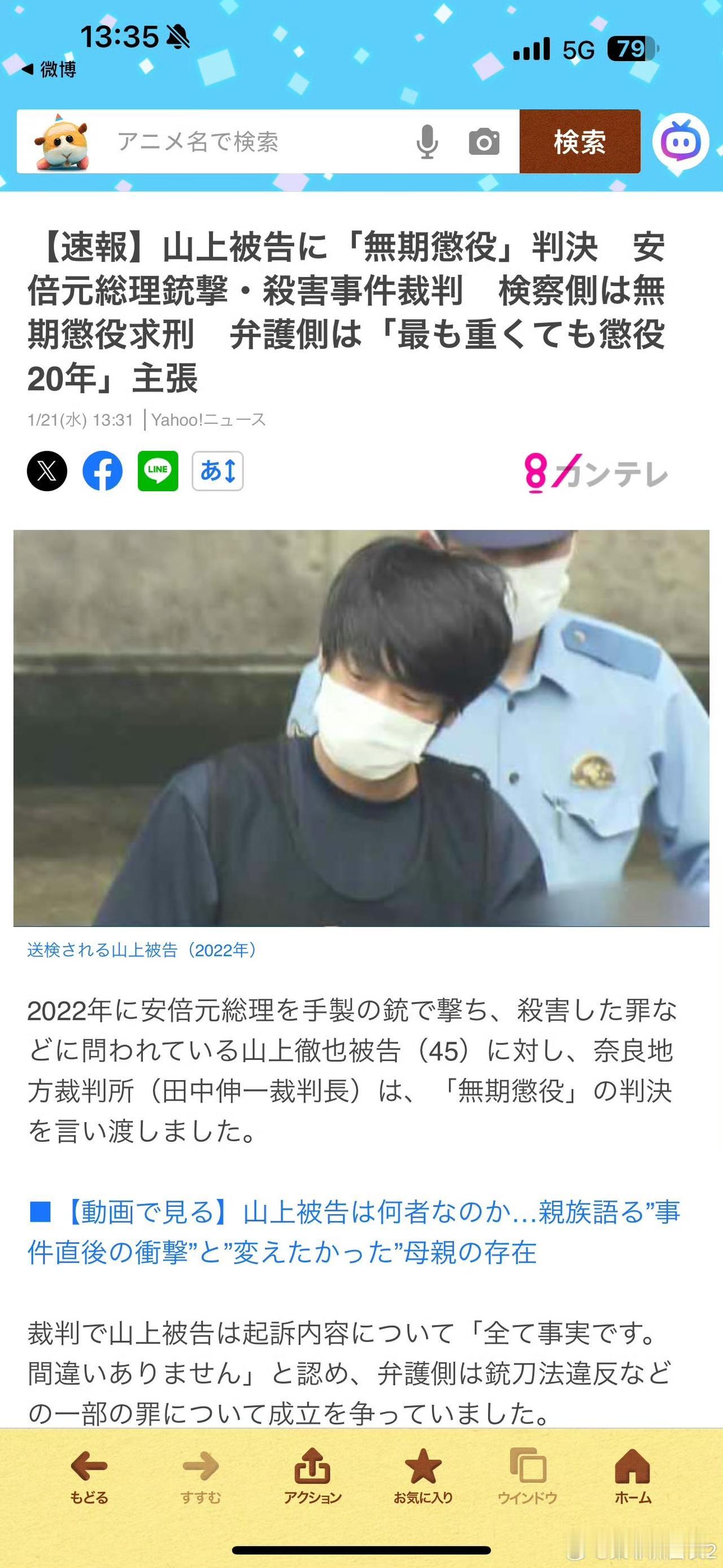安倍晋三遇刺案宣判被告人山上彻也获判无期徒刑 当地时间2026年1月21日,日