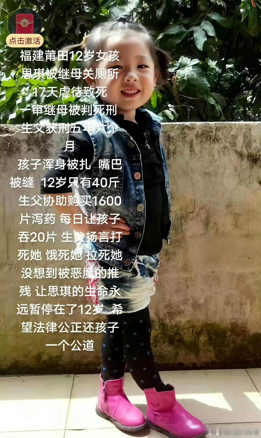 生父帮继母买1600片泻药持续喂女儿这生父枉为人啊,居然忍心对小孩下毒手,没必要虐待人吧,支持立即执行死刑。
