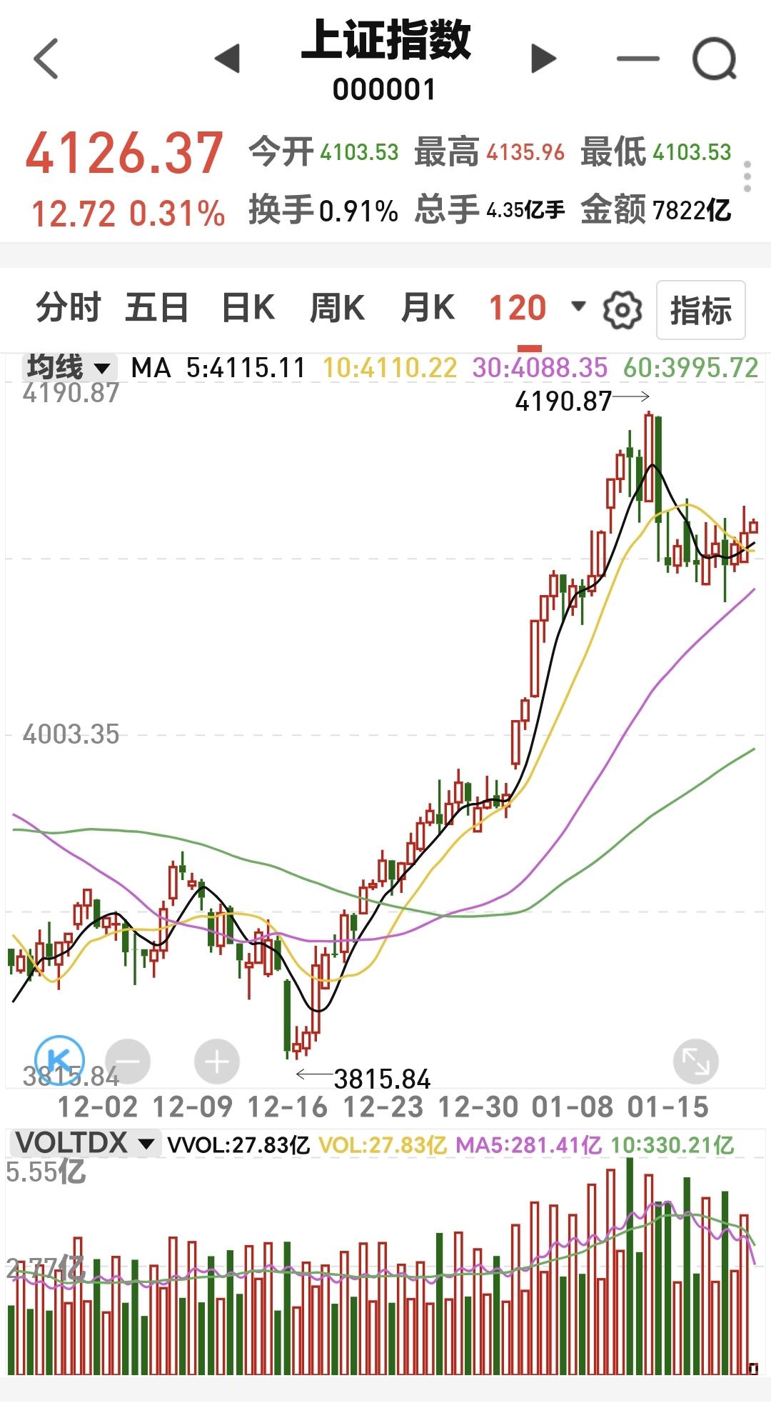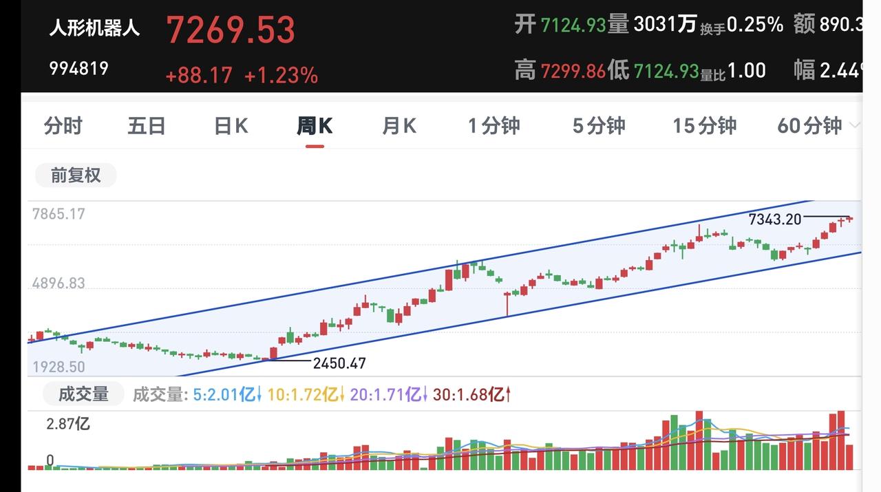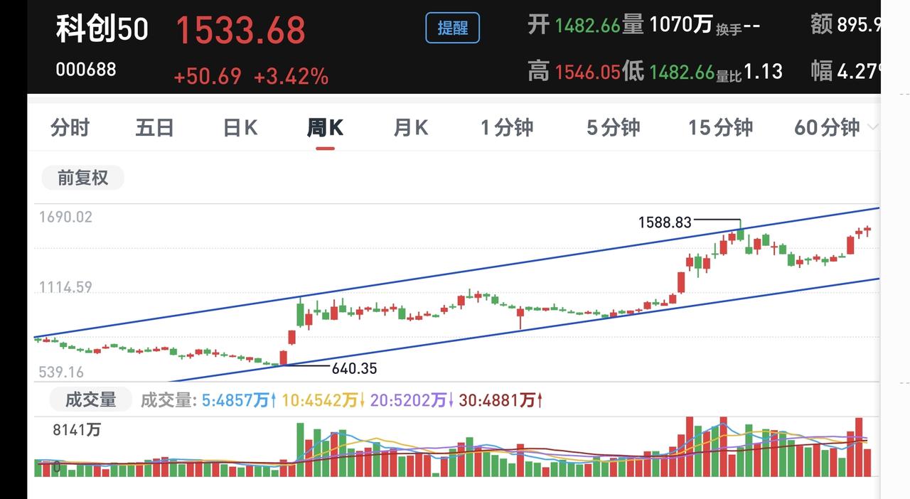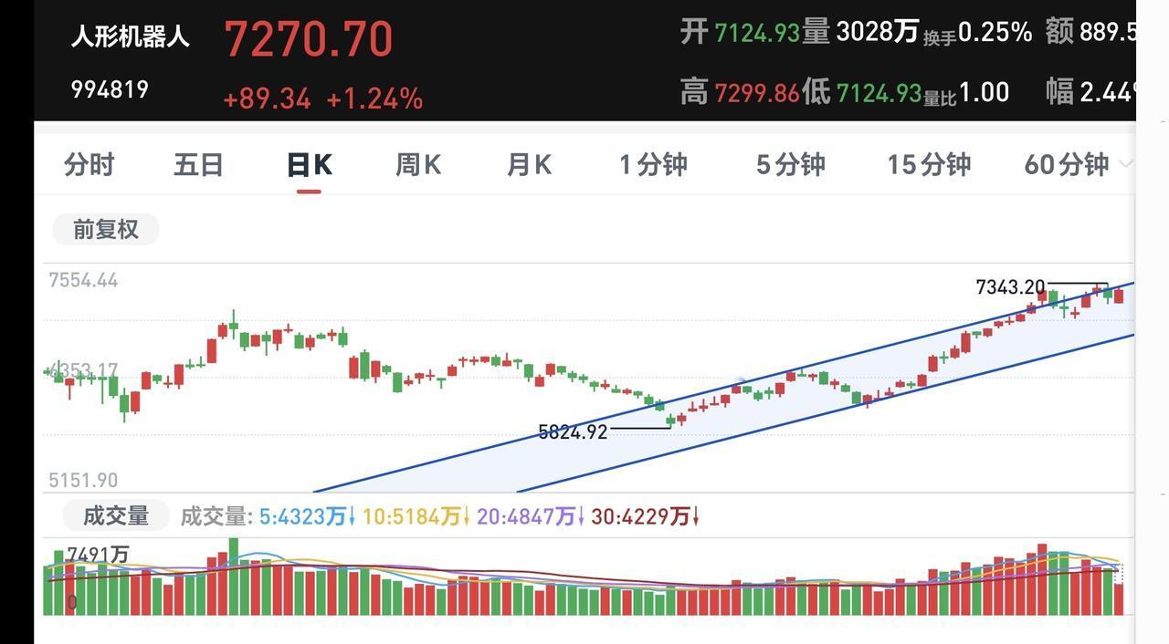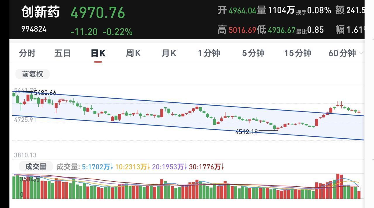 基金:市场小幅度震荡,可不可以进场 市场下午开盘以后小幅度震荡向上,创业板指上涨了1.13%,盘中点位3314点,上证指数上涨了0.36%,盘中点位4128点。 整个股票市场,上涨2850家,下跌2446家,涨停67家,跌停10家,上涨家数多于下跌家数。 持有的基金中,盘中估值上涨幅度最大的三个板块是:芯片半导体板块,5G板块,兴全合宜,估值下跌幅度最大的三个板块是:白酒板块,大消费板块,医疗板块,估值整体上涨了10030元。 整个基金市场,上涨15195家,下跌3140家,上涨幅度超过5%的25家,没有下跌幅度超过5%的基金。 图9是今天基金的上涨排行榜,图10是今天基金的下跌排行榜,图11是ETF上涨幅度排行榜,图12是今天基金的加仓榜,图13是今天基金的减仓榜。 1:现在黄色线在蓝色线上方,但下午开盘以后,黄色线的上涨速度没有蓝色线的上涨速度快,也就是说,两条线之间的敞口在缩小,继续观察两条线的位置变化,看看会不会蓝色线上穿黄色线。 2:现在两市累计成交17439亿,相比于昨天同期缩量了11%,缩量幅度超过10%,就说明在上涨的过程当中,根本就没有资金进场。 3:现在盘中五天线位置是4113点,盘中点位4125点,观察五天线位置的得失,主要是收盘的时候,能不能收在五天线之上。 4:持有的基金中,创新药板块基金富国,现在盘中估值下跌了0.54%,我们来看看这个板块的情况,看下面的截图14,这是创新药板块日K线图,从图中可以看出,我画了两条倾斜向下的斜线,这是创新药板块日线级别下跌通道。前段时间上涨突破了这个下跌通道的上轨,现在是在回踩确认当中,但如果继续下跌,就又会回到这个下跌通道中,那说明前段时间的突破是一个假突破。 我们来看一下下面的截图15,这是创新药板块周K线图,从图中可以看出,我画了两条倾斜向上的斜线,这是创新药板块周线级别上涨通道,现在的位置处于这个上涨通道下轨附近,如果这里能够止跌反弹,这里是一个进场点,如果跌破这个上涨通道的下轨线,满仓持有的人需要考虑要不要止盈出来观望。 我们来看一下下面的截图16,这是机器人板块日K线图,从图中可以看出,我画了两条倾斜向上的斜线,这是机器人板块日线级别上涨通道,现在的位置处于这个上涨通道中,但已经靠近了这个上涨通道的上轨,持有的人可以继续持有,想进场的人需要耐心等待。 我们来看一下下面的截图17,这是机器人板块周K线图,从图中可以看出,我画了两条倾斜向上的斜线,这是机器人板块周线级别上涨通道,现在的位置处于这个上涨通道中,也就是说,机器人板块周线级别处于上涨趋势中,机器人板块大方向向上,持有的人可以继续持有,除非跌破这个上涨通道的下轨,才可以考虑要不要止盈出来观望。 我们来看一下下面的截图18,这是科创50板块周K线图,从图中可以看出,我画了两条倾斜向上的斜线,这是科创50板块周线级别上涨通道,现在的位置处于这个上涨通道内,也就是说,科创50板块周线级别处于上涨趋势中,科创50板块大方向向上,持有的人可以继续持有,除非跌破这个上涨通道的下轨,才可以考虑要不要止盈出来观望。 成交量萎缩的情况之下,不支持市场大幅度上涨,资金不愿意进场的情况之下,即使涨上去也会回落,场内的人下午不可以追高,场外究竟怎么办?我会在评论区留言。 我每天都会分享我的观点,我的观点只代表我个人的看法,不能作为你操作的依据,据此操作后果自负。