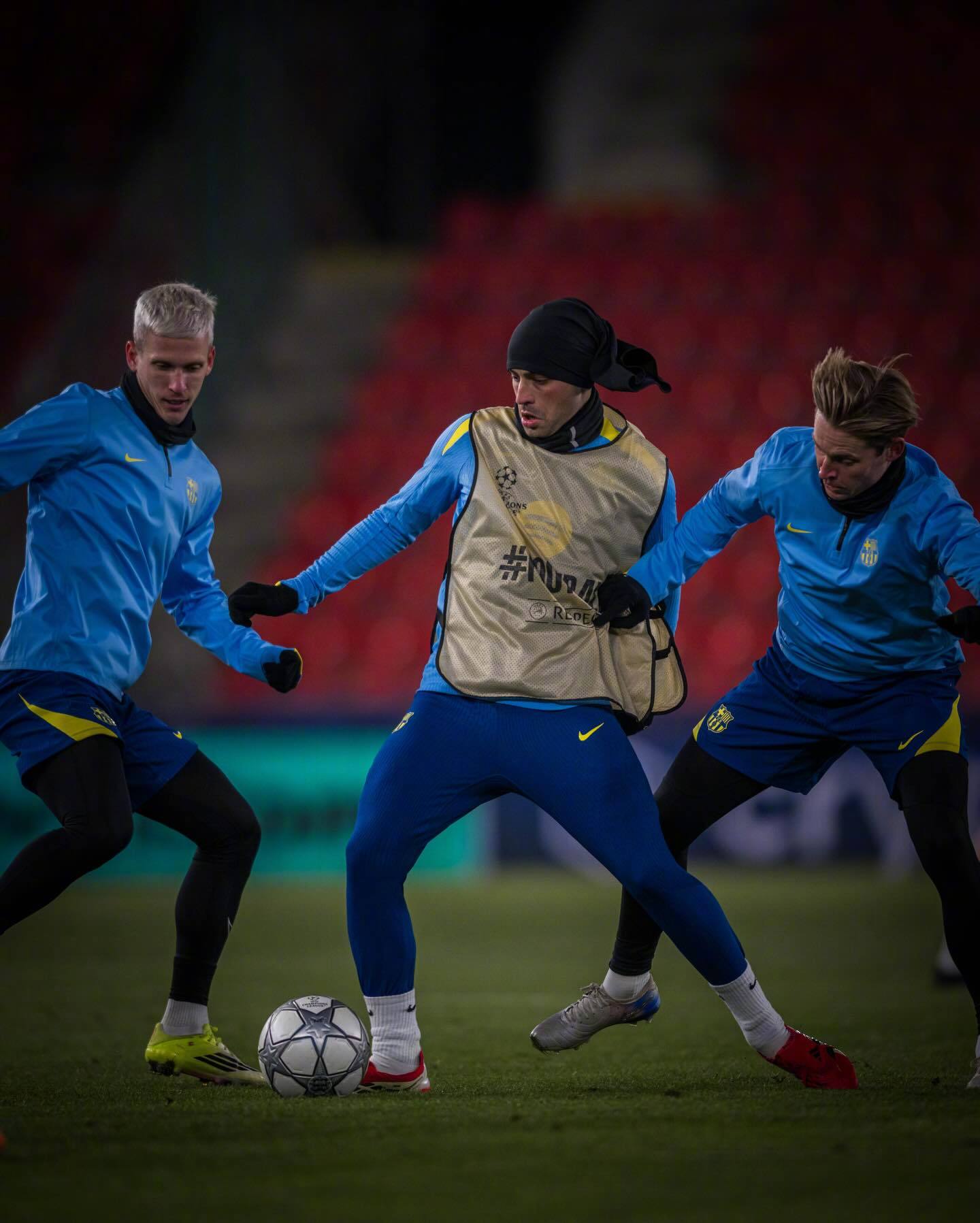 布拉格斯拉维亚vs巴萨 🏟️坐标中赫体育场,开始进行踩场训练💪🏻❤️🔥任何寒冷都阻挡不了一颗颗燃烧的求胜之心!巴萨 🔴🔵ForçaBarça