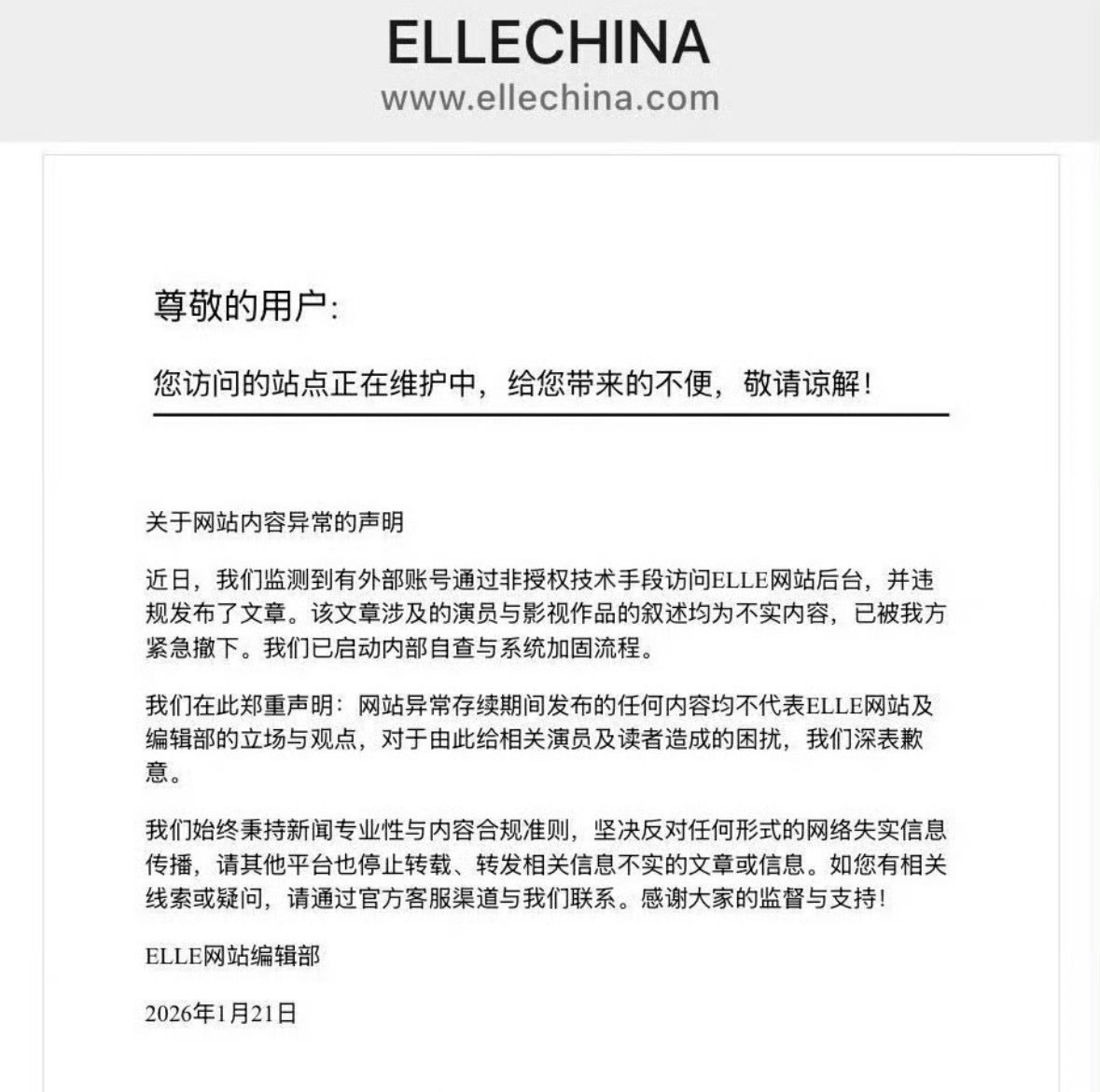 ELLE发声明:有人跑去elle官网用技术手段发别家黑稿。现在紧急撤稿,开启内部自查。 想吃牢饭了。 报警吧