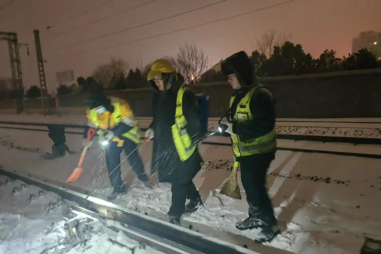 1月19日凌晨,河南驻马店突然杀来一场猛烈的暴雪寒潮,大风裹着雪花铺天盖地,瞬间把城市染成一片白色。驻马店这次降雪特别狠,全市平均积雪厚度达到12到18厘米,局部地方更厚,路面结冰严重,出行直接瘫痪。 这场雪对京广铁路这条南北大动脉威胁不小,一旦道岔结冰,列车就容易出问题。西平火车站的铁路职工反应特别快,从19日早上5点40分开始,36名党员干部职工就冲到现场,拿着扫把、喷灯、除冰铲和融雪剂,对站内17组道岔反复清扫除冰。他们顶着刺骨寒风,在雪地里一干就是一整天,确保线路没积雪没冰层,列车能安全通过。 天气这么冷,这些人24小时轮班守在岗位上,雪下个不停,他们除个不停。到20日凌晨4点50分,车站已经累计出动60多人次继续作战。这种坚持不是喊口号,而是实打实顶风冒雪干出来的,硬是把铁路安全保住了。 这场寒潮让河南沿黄以南大部都遭了殃,驻马店降雪量全省排前,平均15.7毫米,积雪深的地方直接影响交通和生活。但铁路一线职工这种“雪来了人就上”的劲头,真正体现了责任感,让人觉得在恶劣天气里,还有人扛着关键保障不松手