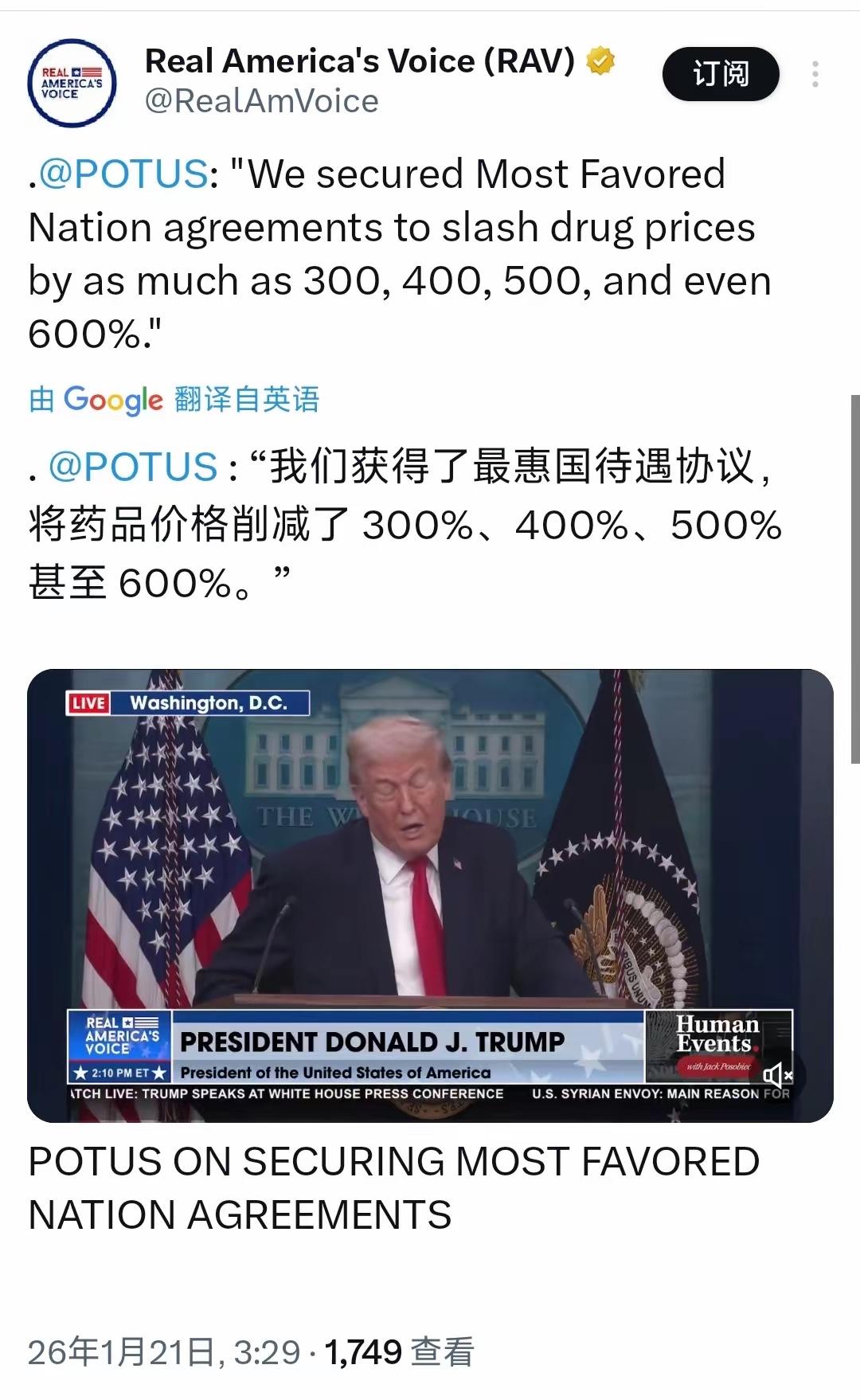 近日,特朗普在新闻发布会上宣布:“我们获得了最惠国待遇协议,将药品价格削减了 300%、400%、500% 甚至 600%。” 严重怀疑特朗普已老年痴呆。价格削减600%?难道卖100块的药还得到贴600块给美国?且不论这违背基本经济常识的离谱数据,特朗普这番言论着实漏洞百出。经济领域,价格最多削减100%即免费赠送,哪有削减300%甚至600%之说,纯属信口开河!