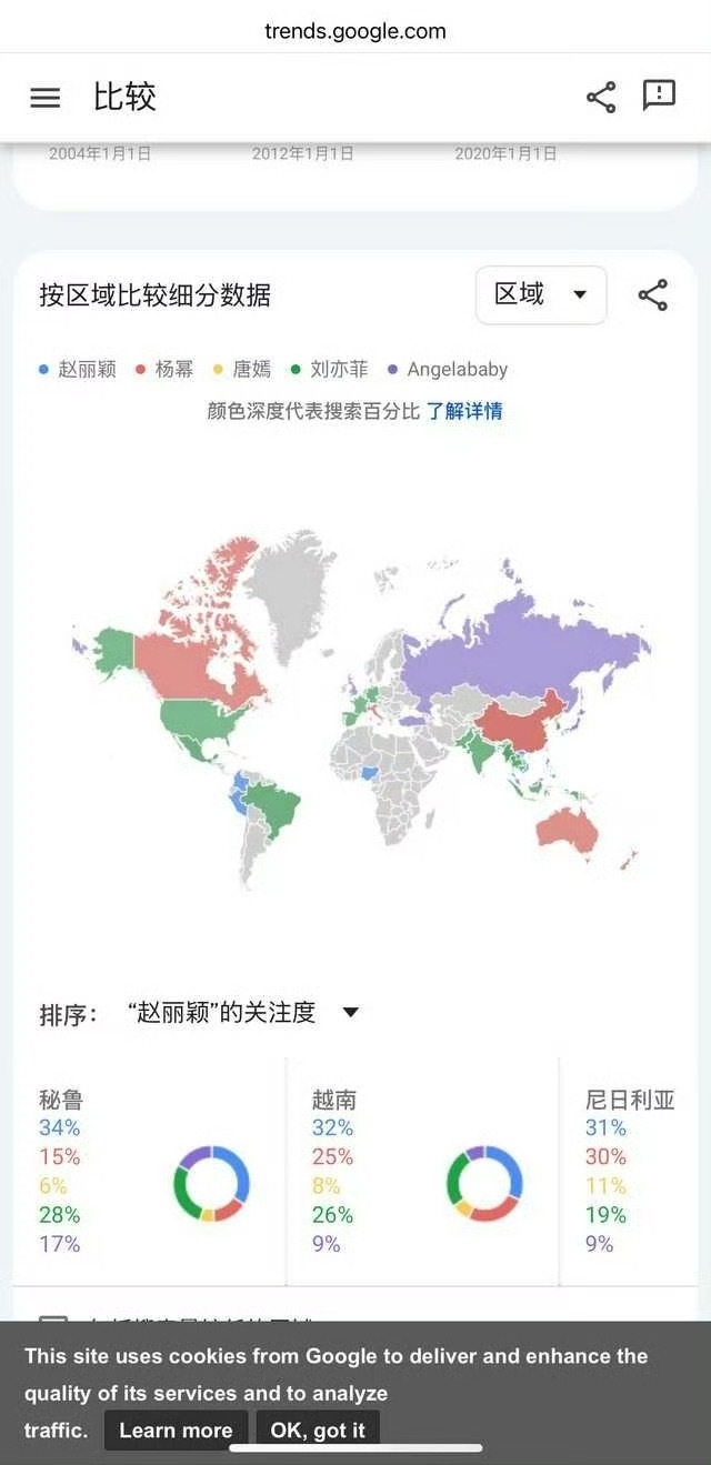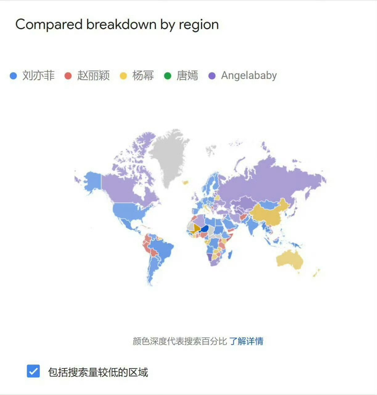 已经捡到三个版本的85花全球范围粉丝分布了 (杨幂 赵丽颖 angelababy 刘亦菲 唐嫣)那个版本是正确的