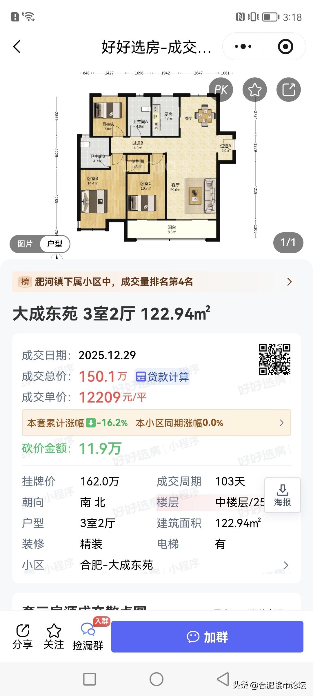 最近都说合肥二手房成交量高,是高,但是都是几十万的房子多,一百二十万以上的成交的