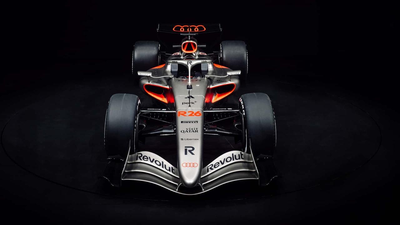 奥迪Revolut R26,2026赛季F1赛车发布! 奥迪F1车队正式发布了2026赛季的F1赛车,奥迪开发了全新的1.6升涡轮增压V6发动机,搭配混合动力能量回收系统和定制的变速器。奥迪F1