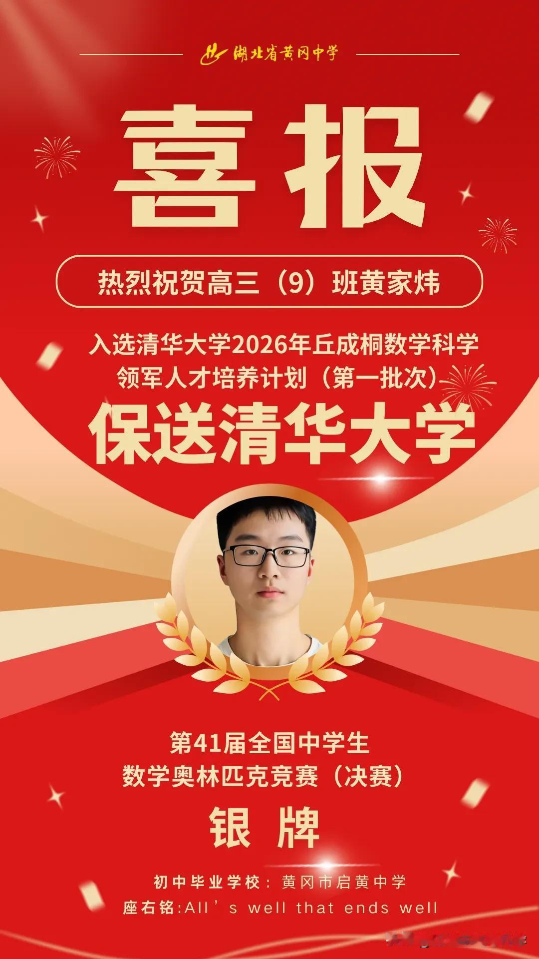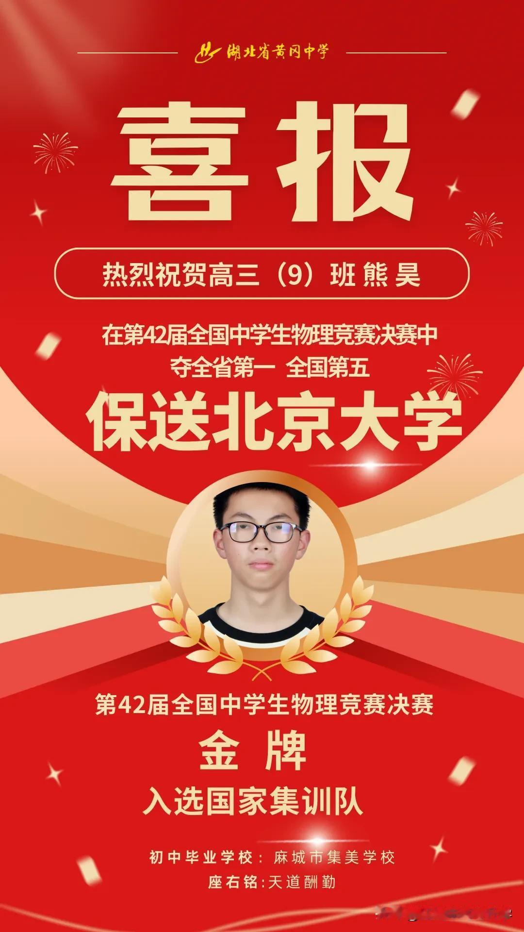 黄冈中学发布清北提前录取喜报 , 2人保送清北、1人入选清华物理“攀登计划”。 作为高中教育的“金字招牌”, 黄冈中学再次用硬核成绩证明, 这里不仅是高考神话的缔造者, 更是顶尖人才的孵化基地! 黄冈中学多年来持续占据湖北竞赛榜首, 堪称“竞赛强校”实至名归! 黄冈中学高三(9)班一直都是竞赛班, 2025年高考,9班曾创下单班3人保送清北、 24人高考均分649分的奇迹。