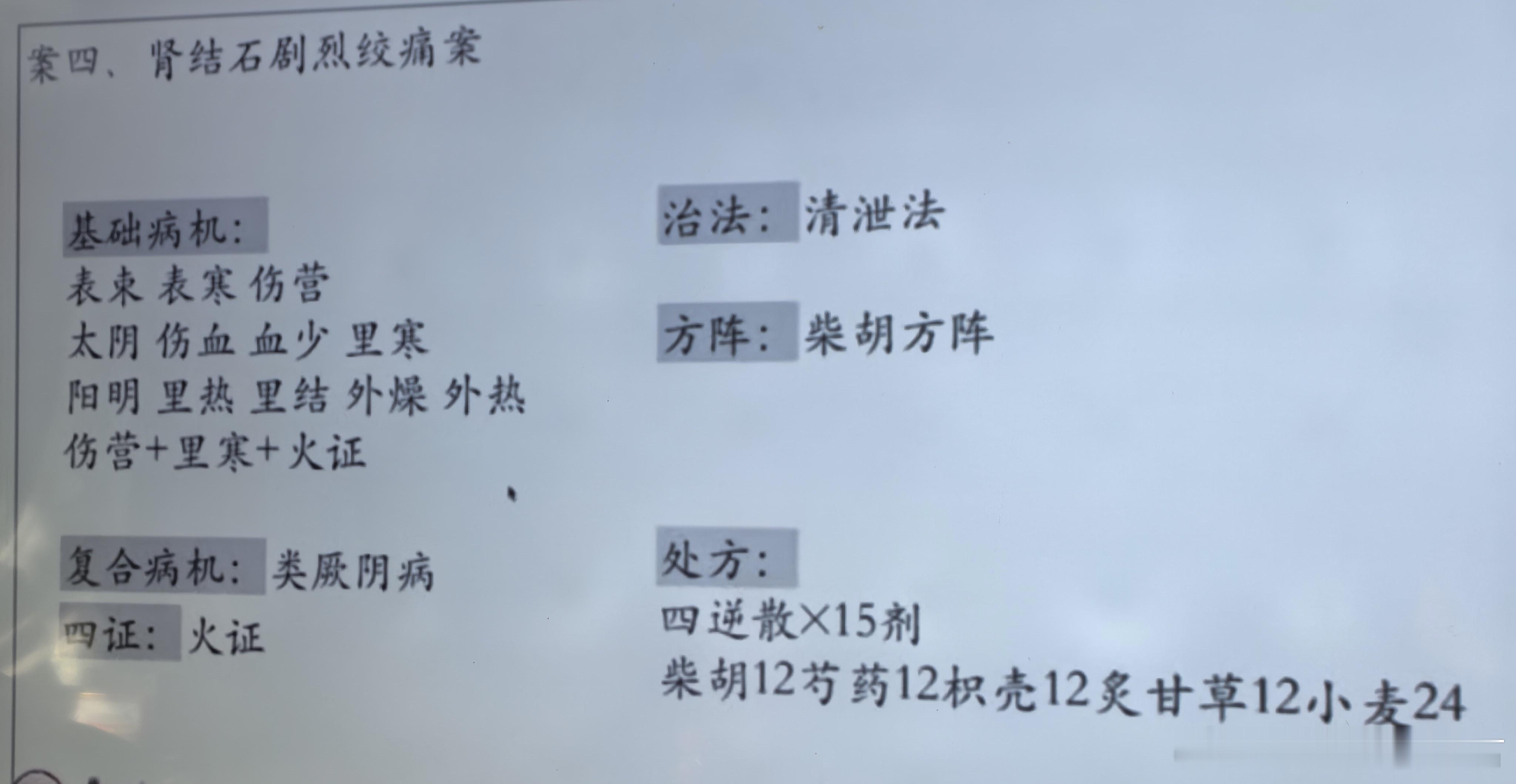 这么严重的肾结石剧痛,一般剂量的四逆散15付,结石就排出来了,许老师的功力我看三阳症状都有,想过五积散、大黄附子汤、藿香正气散之类治太阳和阳明的处方,许老师答案一揭晓,令人拍案叫绝,治少阳、调枢机,轻松解决问题,妙啊舌苔白腻,脉细紧,尤其适合柴胡推陈致新所以要多学名家医案,医生知识储备多一点,患者临床弯路就少走一点!