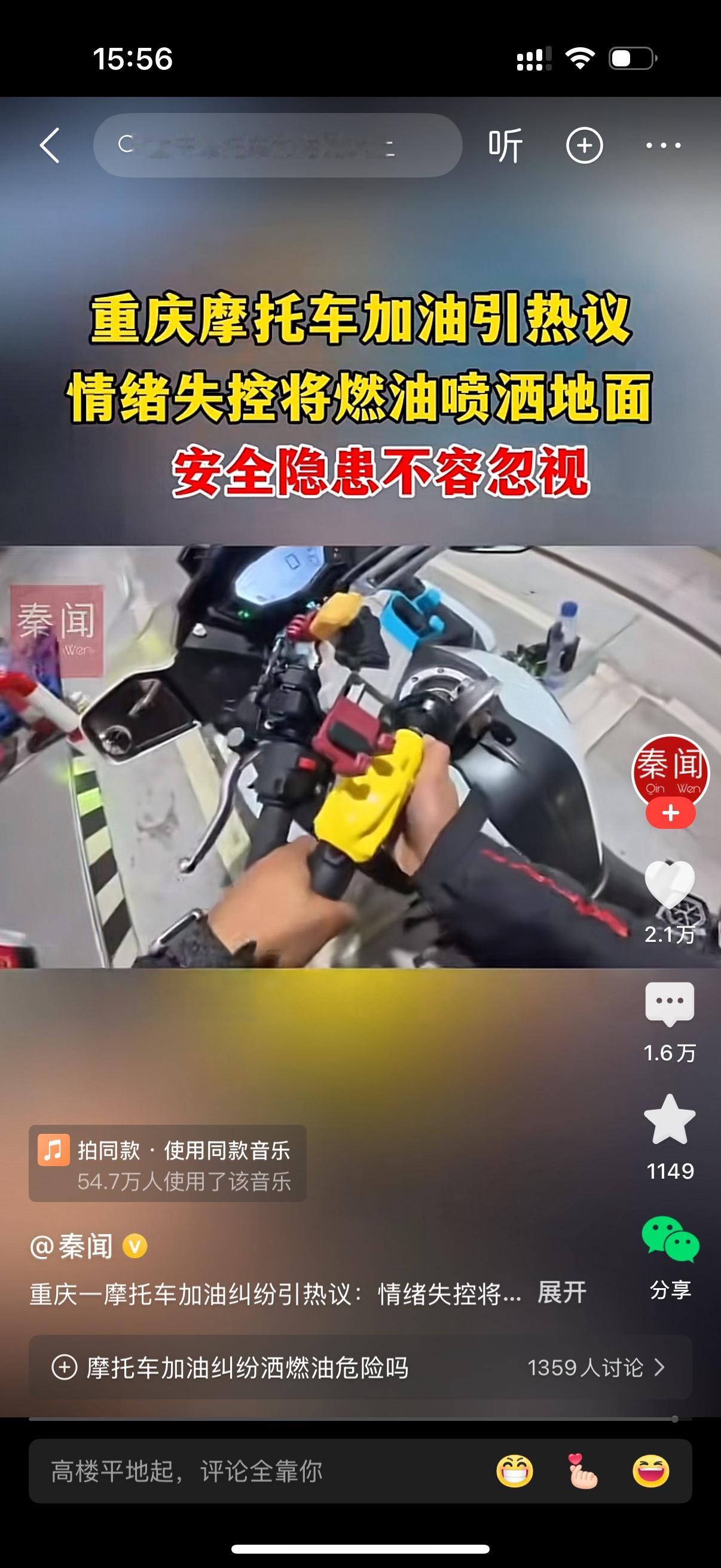 重庆一摩托车车主去加油站加油。加油员却说不行,让摩托车主去报备。车主不愿意打电话