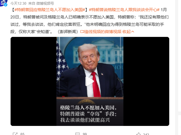 特朗普回应格陵兰岛人不愿加入美国如果给足够多的钱和福利,加上美国的国籍,我想格林兰岛,相当一部分人愿意让美国拥有,毕竟美国还是如今的世界第一强国,起码比跟丹麦强。格陵兰岛的人数本来就不多,他们现在不愿意,不代表明天也不愿意。美国可用的手段还有很多,经济,军事,外交等都有可能,让丹麦屈服! 但是如果强制的话,可能导致欧美关系紧张,破坏国际秩序,国家再次回到弱肉强食的丛林法则。现在是美国总是以自己的利益优先,搞特朗普那个一套,他怎么会在乎欧洲人怎么看,欧洲人也是这个带头大哥的小弟,如果小弟不听话,当哥的可能有千百种折磨你的方式。