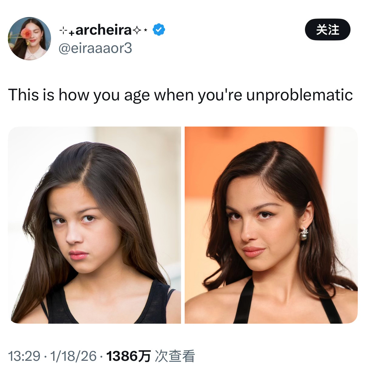网友发帖「心中无事岁月温柔」走红,配图是娅娅OliviaRodrigo